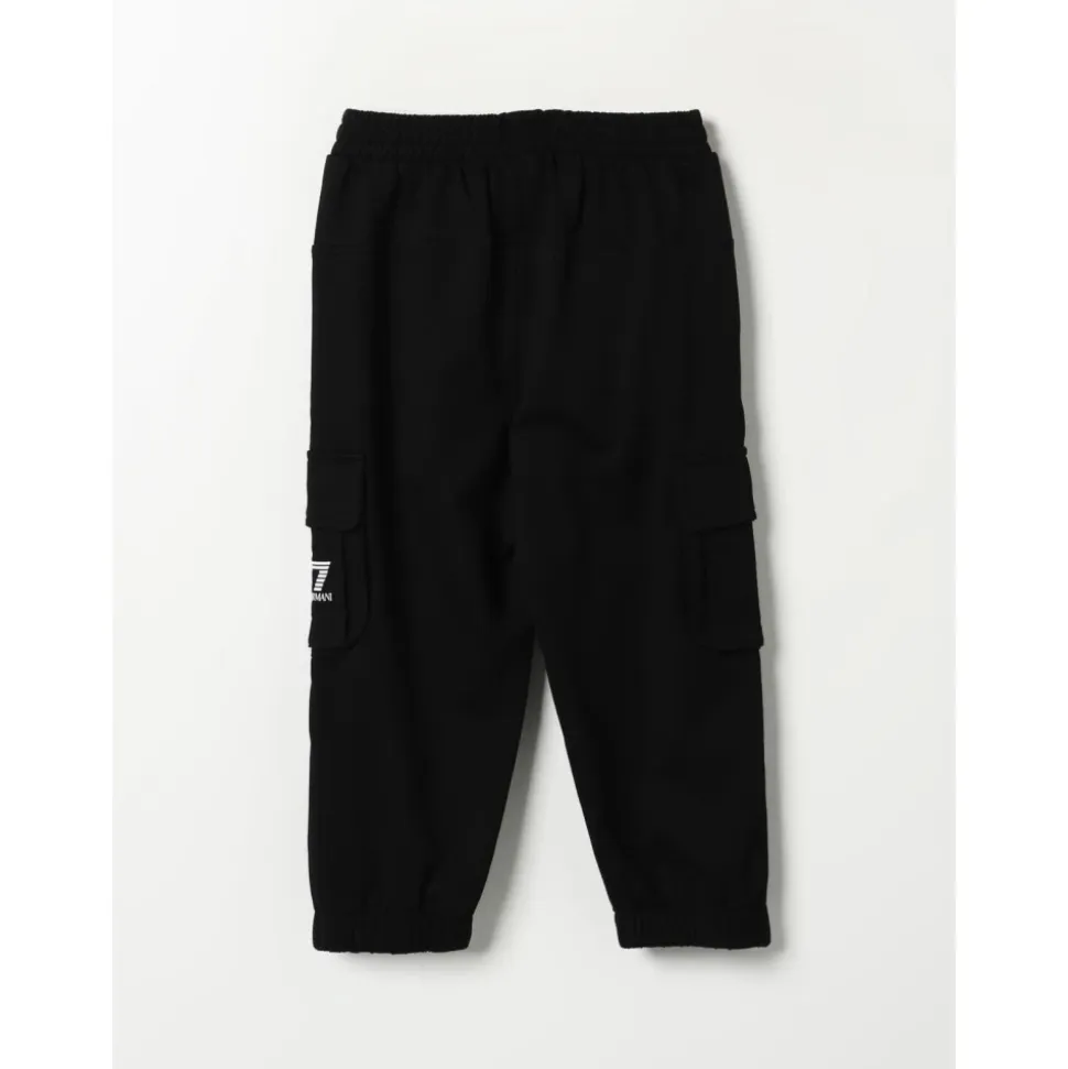 Emporio Armani EA7 Kids Black Sweatpants er designet til komfort og stil. Perfekt skræddersyet til en afslappet pasform, er disse sorte bukser alsidige og velegnede til enhver lejlighed. Lavet af en høj kvalitet bomuldsblanding, sikrer de holdbarhed og langvarig slid til aktive børn.