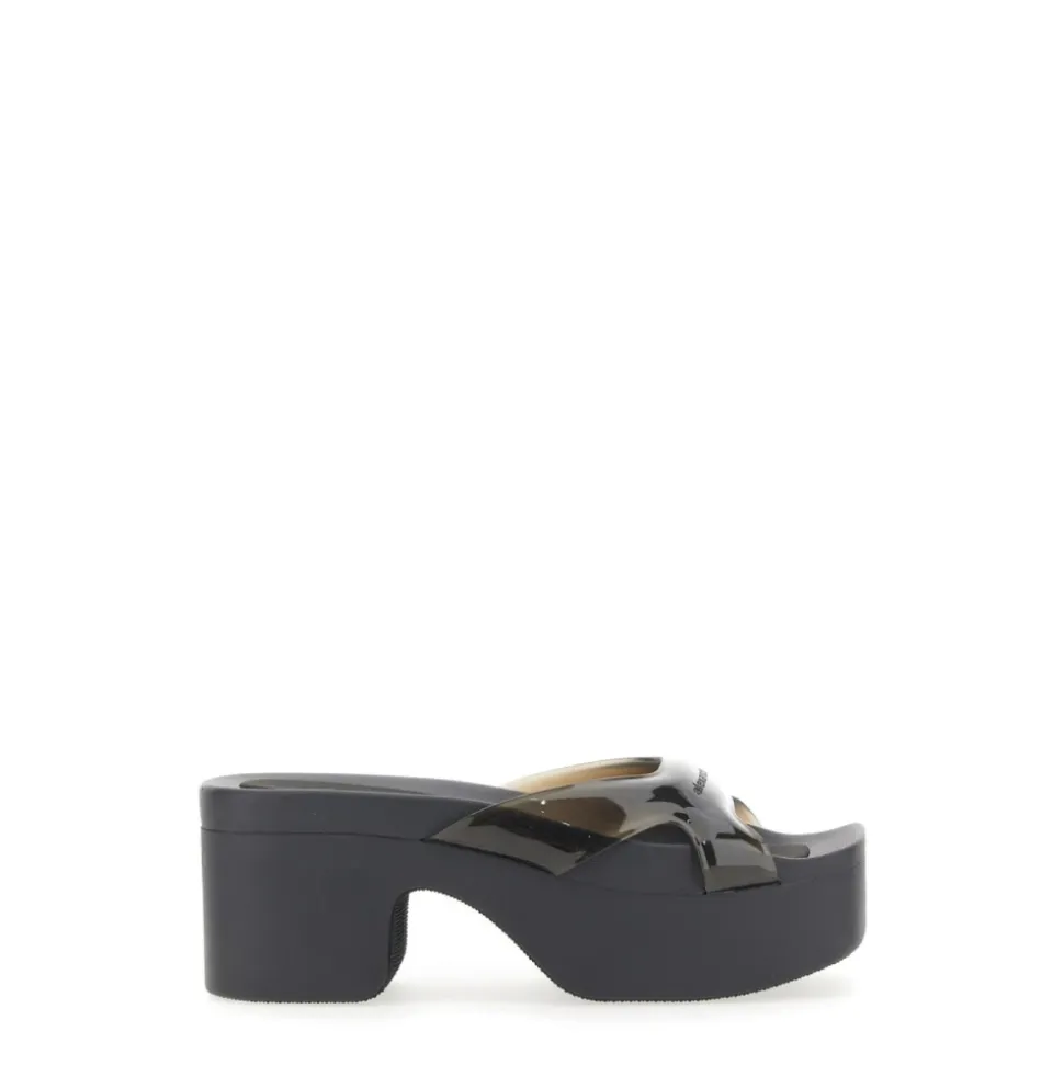 Alexander Wang Sport Platform Slide kombinerer en markant platformsilhuet med en gennemsigtig krydsrem for et moderne og iøjnefaldende look. Den chunky hæl og polstrede fodseng giver mærkbar højde, samtidig med at den er behagelig til hverdagsbrug. Vigtige egenskaber: Sort | Termoplastisk polyurethan | Platformssål for ekstra højde | Polstret fodseng for komfort | Slip-on stil | Neopren polstret fodseng | Platform gummi sål | Gennemsigtig krydsrem | Chunky platform hæl | Firkantet tå | Poleret finish | Logo på rem | Dimensioner & pasform: Hælhøjde: ca. 75 mm / 7,62 cm | Platformhøjde: ca. 57 mm / 5,715 cm | Sammensætning & pleje: Overdel: Termoplastisk polyurethan (TPU) | Fodseng/Foring: Neopren | Ydersål: Gummi