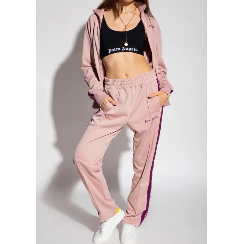 Sort sports top med stropper fra Palm Angels. Denne vare er lavet af elastisk stof og har en elastisk taljebånd med et logo i sort og hvid.