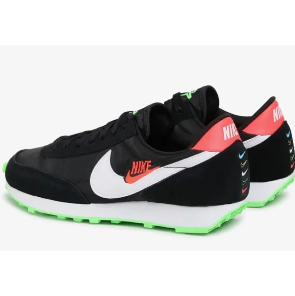 Få et boost til dit holdsports spil med disse Nike sports sko til kvinder. Med et elegant sort design med hvide og grønne accenter, snørelukning, afrundet tå og ingen hæl. Perfekt til daglig sportsaktivitet. Inkluderer stofsnørebånd.