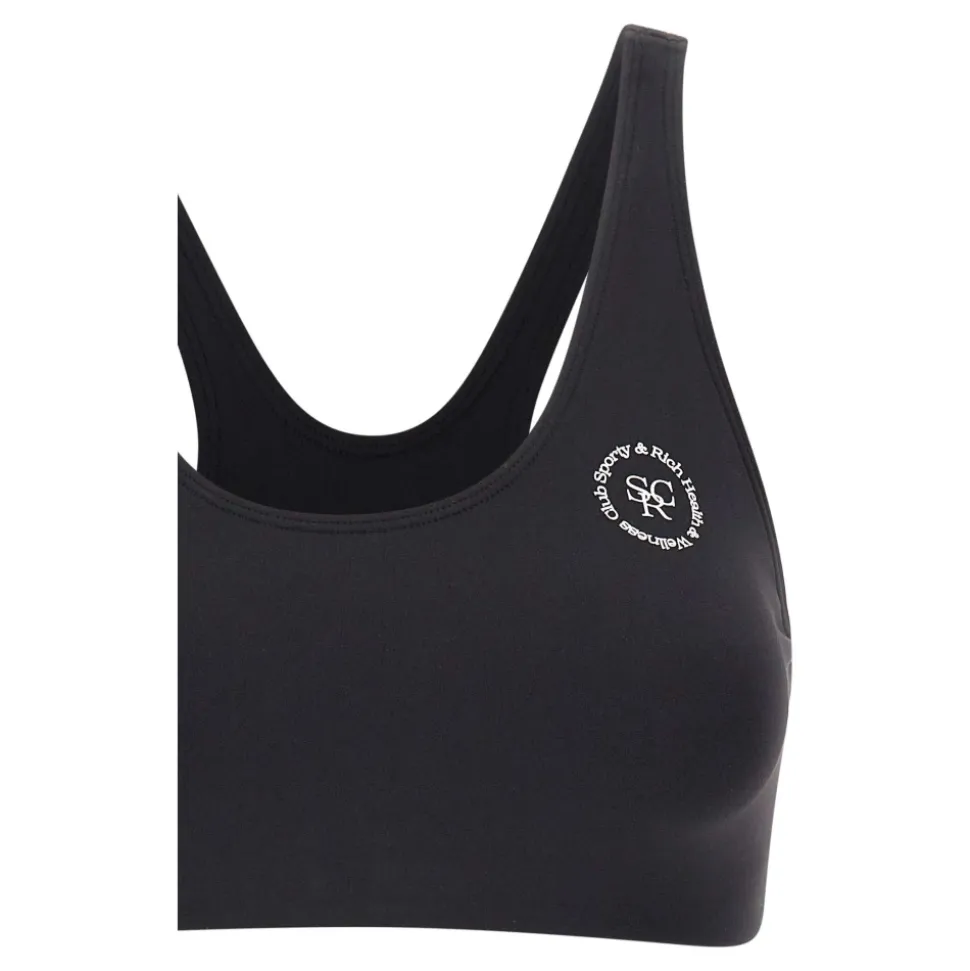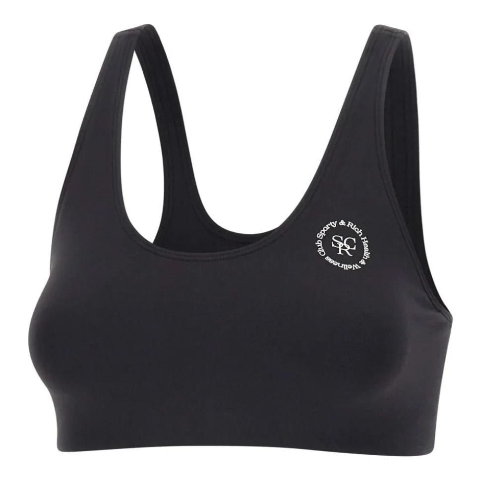 Sporty & Rich SRHWC Sports BH er en strækbar sports-BH, der er designet til hverdags træning og aktivt brug. Den giver en tætsiddende pasform med pålidelig støtte og et rent, moderne atletisk look. Vigtige egenskaber: Sort | Nylon | Støttende | Strækstof | Føles som et ekstra lag hud | Blød | Holdbar | Elastisk underkant | Slip-on design | Blød skål uden bøjle | Ikke-justerbare stropper | Printet ‘SRHWC’-logo på brystet | Rent atletisk silhuet | Dimensioner og pasform: Tætsiddende pasform, der tilpasser sig kroppen | Bevægelsesfrihed | Velegnet til alle kropstyper | Normal i størrelsen | Medium-støtte | Sammensætning og pleje: 82% Nylon | 18% Spandex | Maskinvask