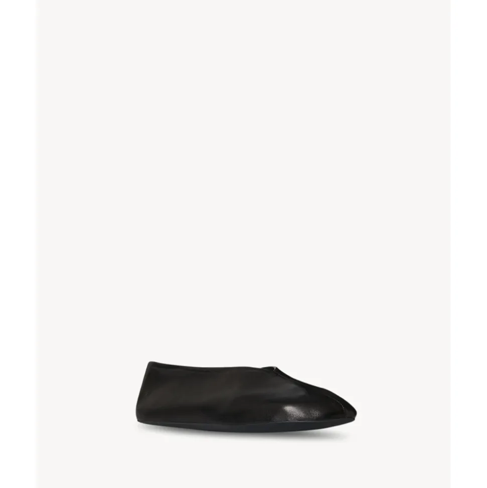 The Row Stella Slipper kombinerer blødt nappa lammeskind med en blød shearling-foring for en let, slip-on flad sko, der er fremstillet i Italien. Dens fleksible gummibelagte sål gør den velegnet til hverdagsbrug både indendørs og udendørs. Nøgleattributter: Sort | Schwarz | Lammeskind | Fleksibel gummibelagt sål | Slip-on | Blød shearling-foring | Oval tå | Glat nappa finish | Sammensætning & pleje: 100% lammeskind | Syntetisk sål