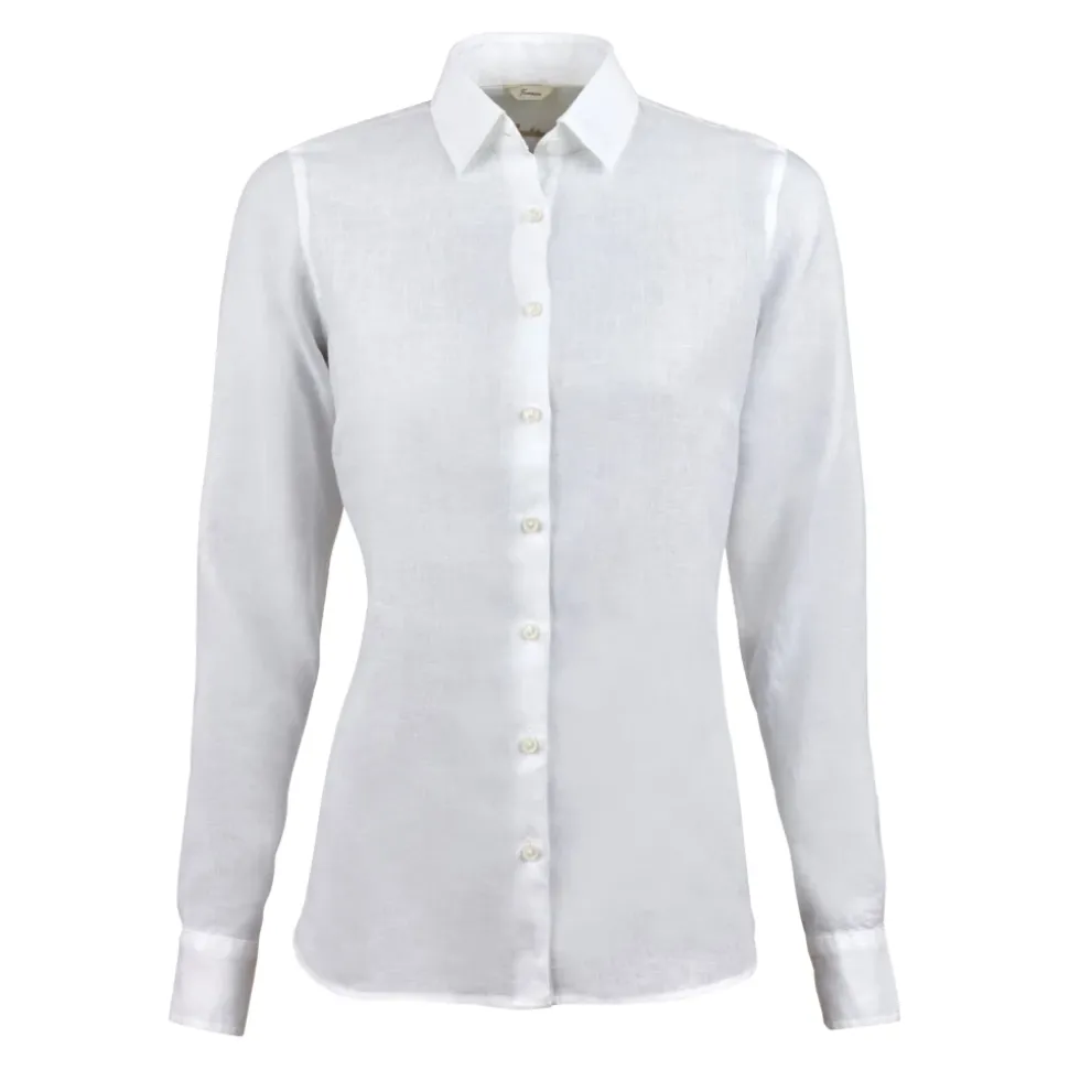 Denne hvide hørskjorte fra Stenströms er slim fit og elegant. En stil som denne er et tidløst tilføjelse til enhver kvindes garderobe. Designet af det danske modehus Stenströms og er lavet af hør, et materiale som er perfekt til sommer og som føles behageligt mod huden. Hør er også åndbart. Den slanke pasform giver et flatterende look og gør skjorten ideel til både formelle og uformelle lejligheder.Skjorten har en klassisk krave, lange ærmer med manchetter og en enkel, men elegant knaplukning. Den hvide farve giver en ren og frisk udseende, som passer perfekt til ethvert outfit.Materiale og pleje:100% HørMaskinvask på.