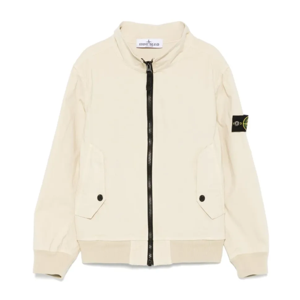 Stone Island Kids Coats Stylish Collection tilbyder en alsidig beige jakke, der er perfekt til lagdeling i overgangsvejr. Kendt for sin kvalitetshåndværk er denne jakke et must-have til ethvert barns garderobe. Produkt detaljer: Beige | Bomuld | Åndbart stof | Justerbare stropper | Lange ærmer | Lynlåslukning foran | Kompasapplikation | Dimensioner og pasform: Regular fit | Sammensætning og pleje: 95% Bomuld | 5% Elastan | Maskinvask kold, tørretumbles ved lav varme