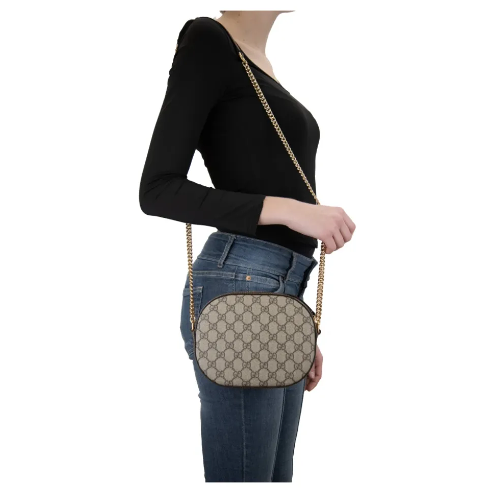 Forkæl dig selv med denne luksuriøse Gucci Women’s Cross Body Bag. Lavet af læder med en for i stof, der minder om ruskind, har denne taske det ikoniske ‘GG’ brand initialer motiv på ydersiden. Det rummelige indre inkluderer en mini kuvertlomme og en syet logo patch. Den faste skulderrem er lavet af guldfarvet metal kæde med et læderhåndtag for et strejf af elegance. Produceret i Italien. Mål: B21,5cm x H16,5cm x D6,5cm.