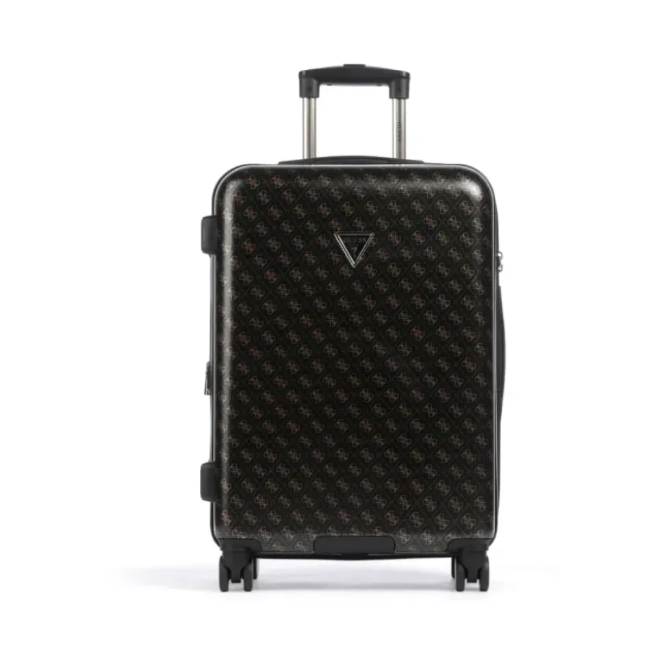 Denne kuffert vil hæve dine sommerrejser med et strejf af moderne stil, perfekt til en organiseret getaway. Plejeinstruktioner: Rengør med en fugtig klud, undgå langvarig udsættelse for fugt. Mål: 44 x 64 x 26 cm, vægt: 4,1 kg. Ideel for voksne. Guess bagage. 100% originalt Guess produkt, tilgængelig på zeshoes.com.