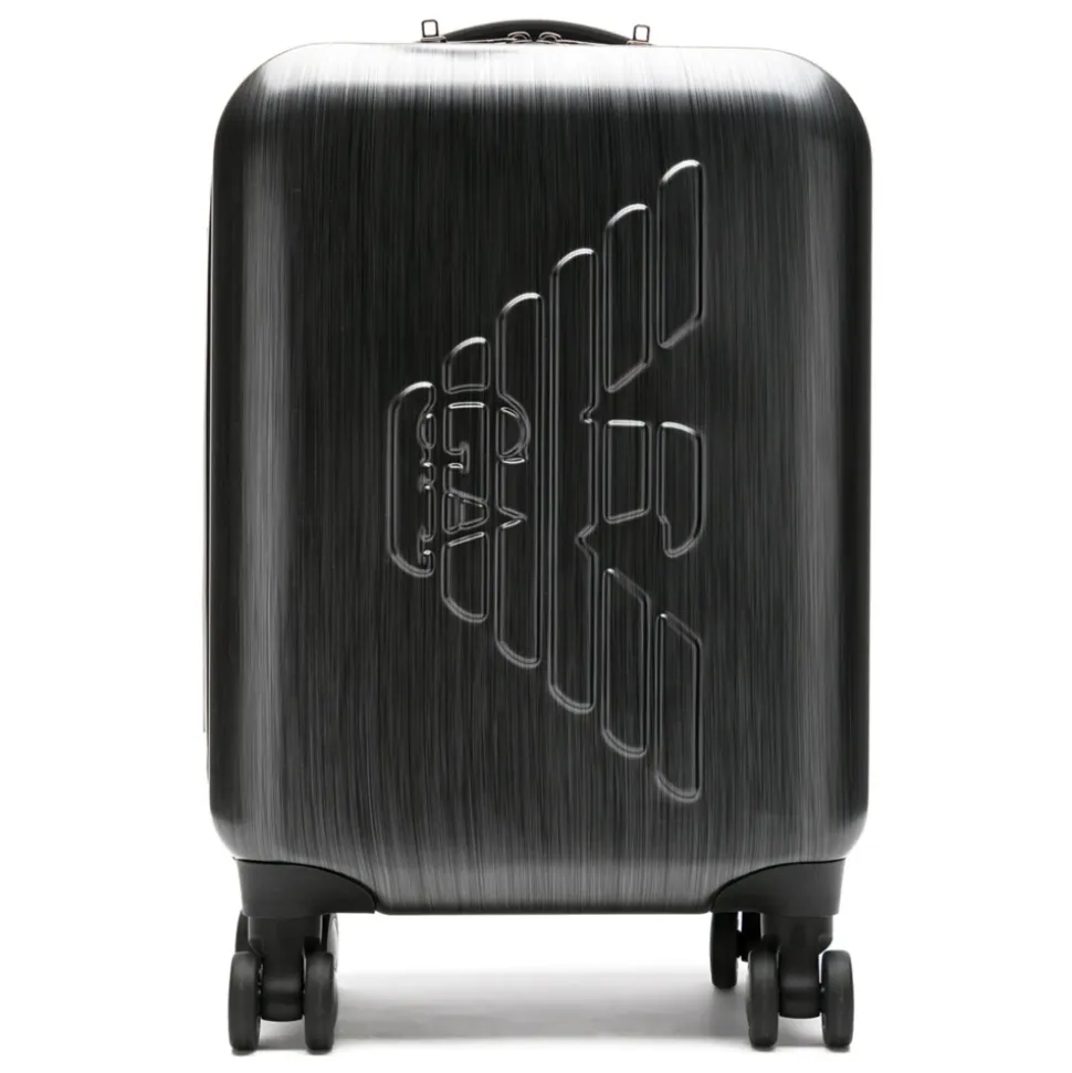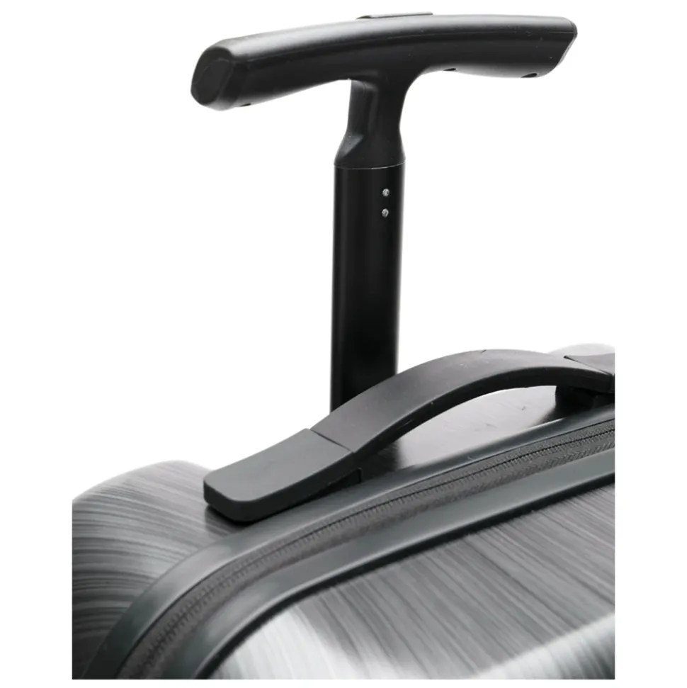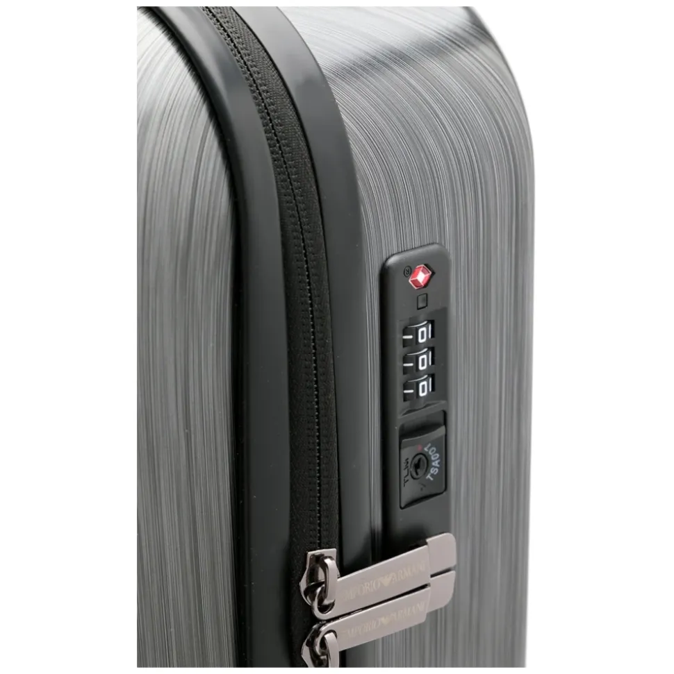 Emporio Armani Stilfuld Rejse Trolley Taske er din perfekte ledsager til problemfri rejser, der tilbyder både stil og funktionalitet i et kompakt design. Produkt detaljer: Grå | Polycarbonat | Holdbar konstruktion | 360-graders spinnerhjul | Teleskophåndtag | Elegant ydre | Logo detaljering | Dimensioner og pasform: Kompakt kabinestørrelse | Sammensætning og pleje: 100% Polycarbonat | Aftørres med en fugtig klud.