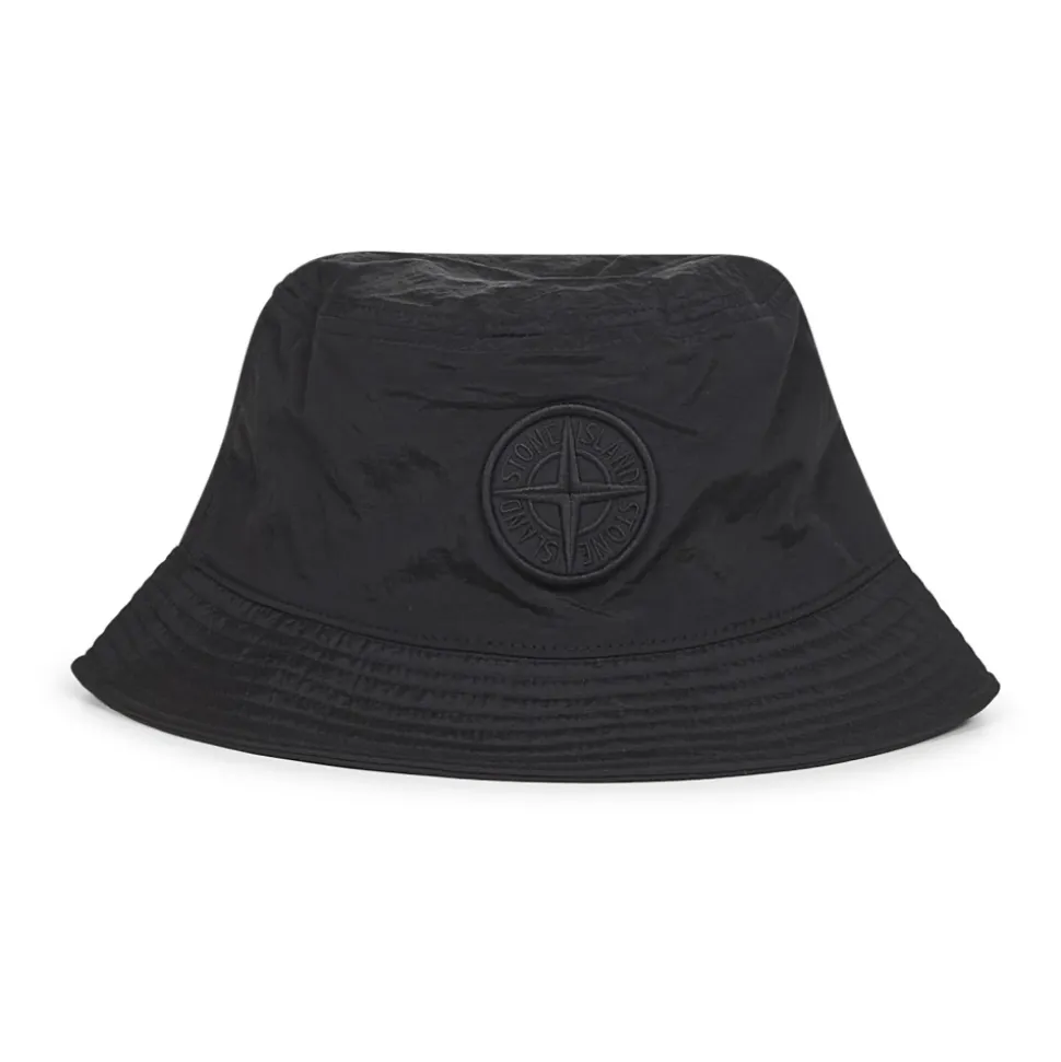 Stone Island hat med et tone-i-tone hævet Compass-logo broderet foran og en topstikket skygge. Fremstillet i 100% polyamid for et letvægts tilbehør. Vigtige egenskaber: Sort | Polyamid | Tone-i-tone hævet Compass-logo broderi foran | Topstikket skygge | Sammensætning & pleje: 100% Polyamid