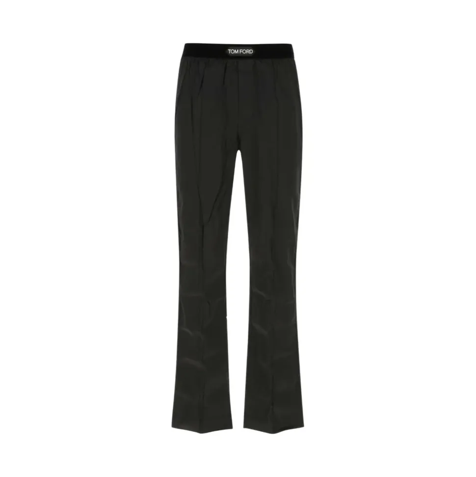 Tom Ford Stretch-Silke Satin Pyjamabukser kombinerer en silkeblød satinskær med stretch for komfortabelt, afslappet loungewear. Designet med en logo-velourlinning, de fungerer som eksklusivt nattøj eller polerede after-hours bukser. Nøgleattributter: Sort | Silke | Stretch-forstærket stof | Flydende drapering | Elastisk linning | Sidelommer | Baglommer med påsyet stykke | Velour logo-linning | Pressefolder | Lige ben | Satinfinish | Dimensioner og pasform: Afslappet pasform | Passer normalt i størrelsen | Sammensætning og pleje: 93% silke | 7% elastan | Maskinvask