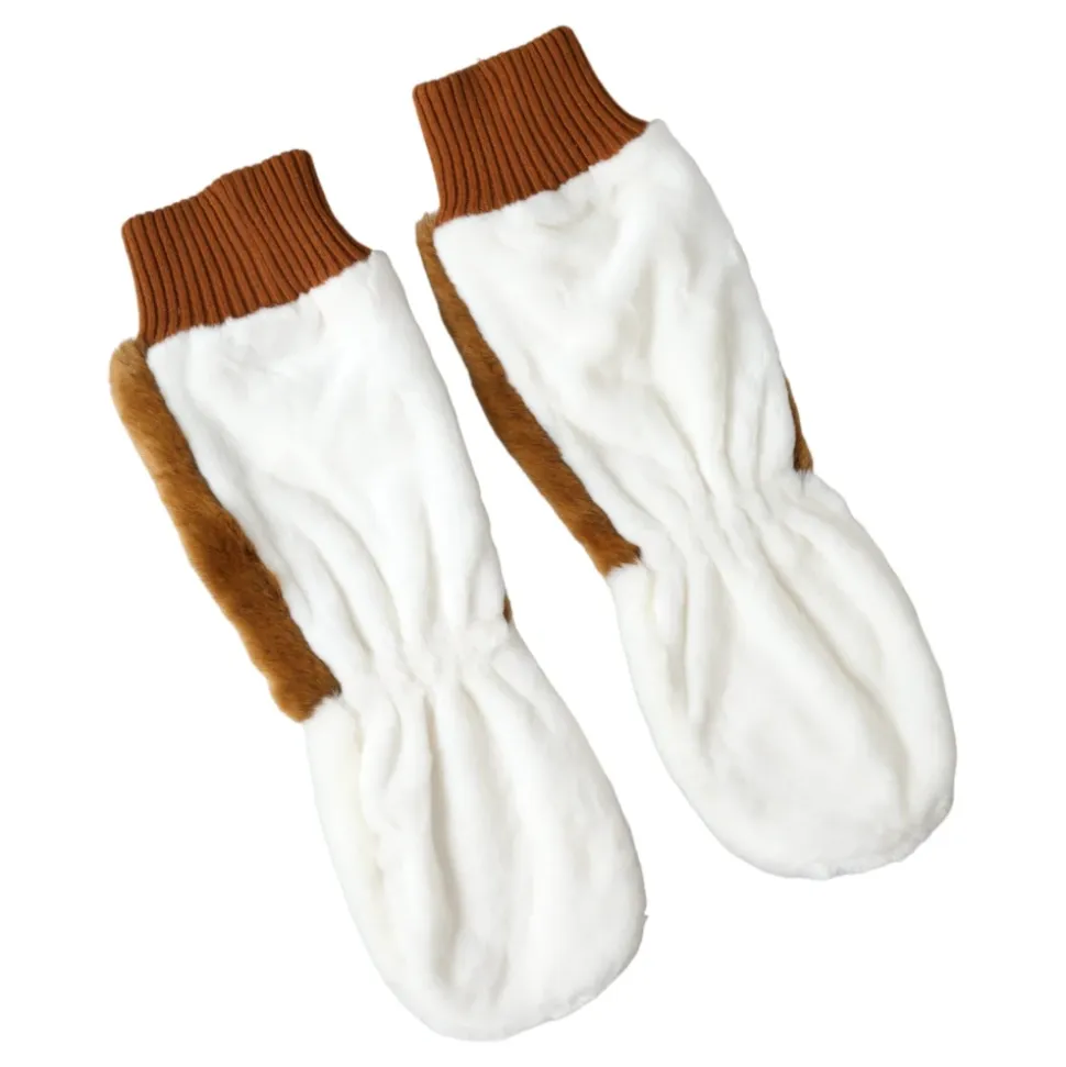 Forhøj din vinterstil med disse fantastiske Dolce & Gabbana strikkede pelsvanter. Fremstillet i Italien med omhyggelig opmærksomhed på detaljer, disse vanter har en blanding af brune og hvide farver, logo detaljer og en luksuriøs bomuldsforing. Et sjældent fund der viser høj håndværkskunst. Model: Medium længde.