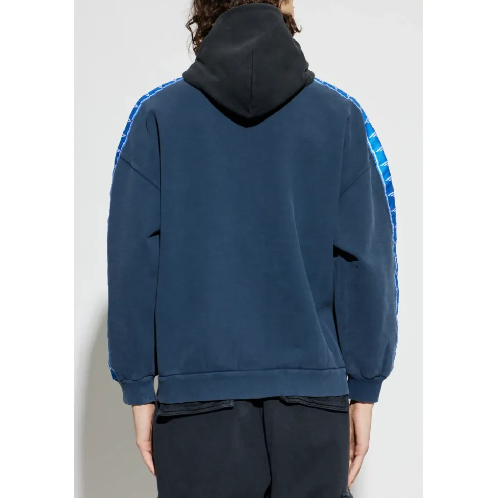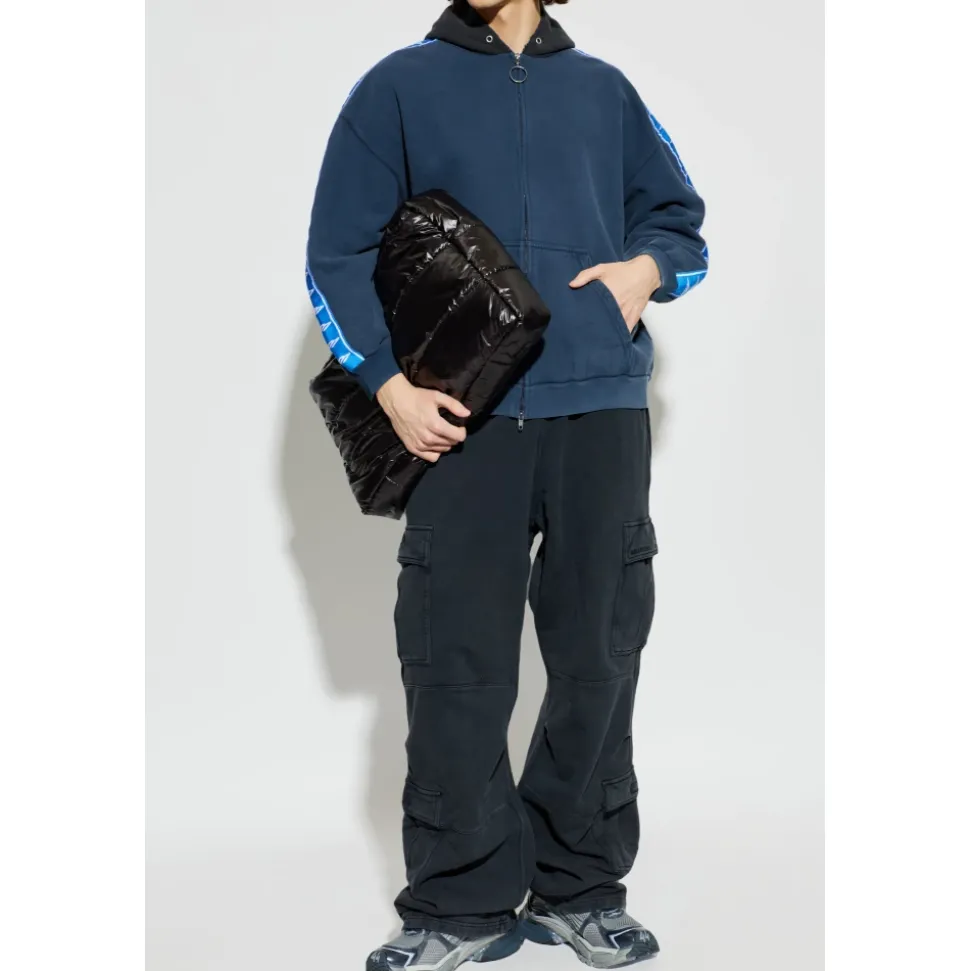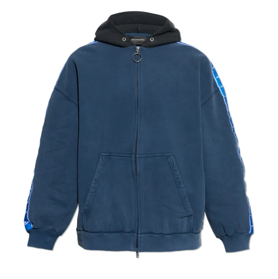 Balenciaga Stripe Patched Hood Zip-up Hættetrøje kombinerer markante skulderstriber og en kontrasterende hætte med en dobbeltsidet metallynlås for raffineret streetwear-stil og hverdags komfort. Nøgleattributter: Navy | Blå | Sort | Bomuld | Tør fleece | Blød følelse | Forlommer | Dobbeltsidet lynlås med rundt metalvedhæng | Kontrasterende hætte uden snøre | Droppede skuldre | Ærmebånd med grafisk motiv i fuld længde | Bred stribe på skuldre og ærmer | Samlede manchetter og kant | Mål og pasform: Modelhøjde: 185 cm | Bryst: 92 cm | Talje: 74 cm | Hofter: 91 cm | Modellen er iført størrelse: L | Sammensætning og pleje: Hovedmateriale: 100% bomuld | Detaljer: 100% polyester | Håndvask ved stuetemperatur. Vask separat. Vask med vrangen ud. Brug mildt vaskemiddel. Brug ikke skyllemiddel. Luk alle fastgørelsesanordninger før vask. Bleg ikke. Tør ikke i tørretumbler. Hæng til tørre i skyggen. Stryg ved maksimal temperatur 120°C uden damp. Stryg med vrangen ud. Må ikke renses.