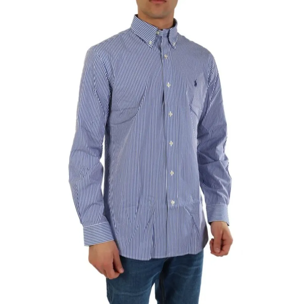 Ralph Lauren Stripet Stretch Poplin Skjorte kombinerer strækbar bomuldspoplin med en klassisk button-down krave og broderet pony for et poleret smart-casual look. Ideel til hverdags kontorbrug eller raffinerede weekend outfits. Nøgleattributter: Blå | Hvid | Bomuld | Strækstof | Åndbar poplin | Button-down krave | Knaplukning foran | Manchetter med enkelt knap | Broderet logo på brystet | Stribet mønster | Buet søm | Læg i ryggen | Lange ærmer | Sammensætning & pleje: 91% bomuld, 9% elastan