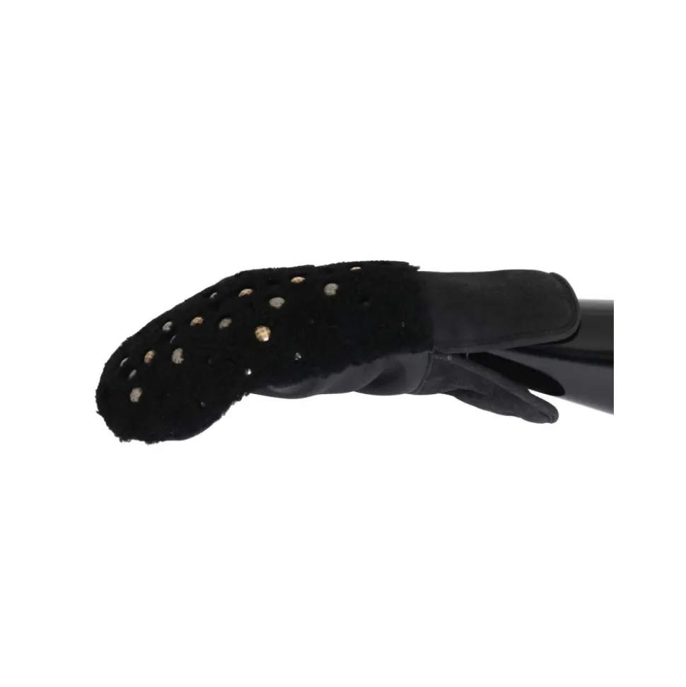 Tilføj et strejf af luksus til dit outfit med disse spritnye Dolce & Gabbana handsker fra MainLine-kollektionen. Fremstillet i Italien af læder og shearling-materialer, har disse autentiske handsker en afslappet håndledsstil i sort med guld- og sølvnitter og logo-detaljer.