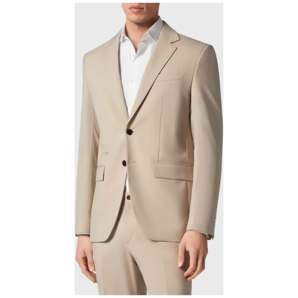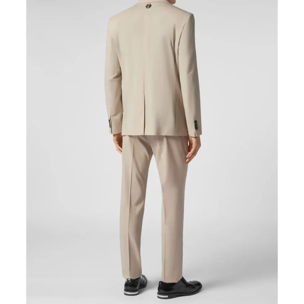 Philipp Plein Suit: Blazer/Trousers Sartorial kombinerer en skræddersyet silhuet med stretch for komfort hele dagen. Fremstillet i en let uldblanding af gabardine og afsluttet med signatur PP Hexagon saffian læder patches. Vigtige egenskaber: Beige | Uldblanding gabardine | Stretch | Letvægtsstof | To-knapslukning | Klaplommer | Weltlommer | Indvendig foring | Bukser med flad front | PP Hexagon saffian læder patch ved bærestykke og højre baglomme | Logo-horn enkelt knap | Enkelt slids | Klassisk skåret bukser med flad front | Dimensioner & pasform: Slim fit | Klassisk skåret bukser med flad front | Sammensætning & pleje: Stof 1: 53% polyester, 43% jomfruuld, 4% elastan | Foring 1: 51% viskose, 49% acetat | Stof 2: 53% polyester, 43% jomfruuld, 4% elastan | Foring 2: 60% acetat, 40% viskose | Foring 3: 65% polyester, 35% bomuld