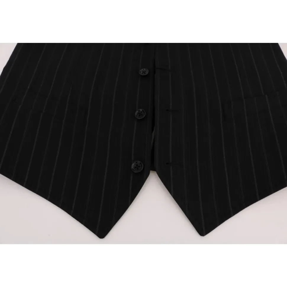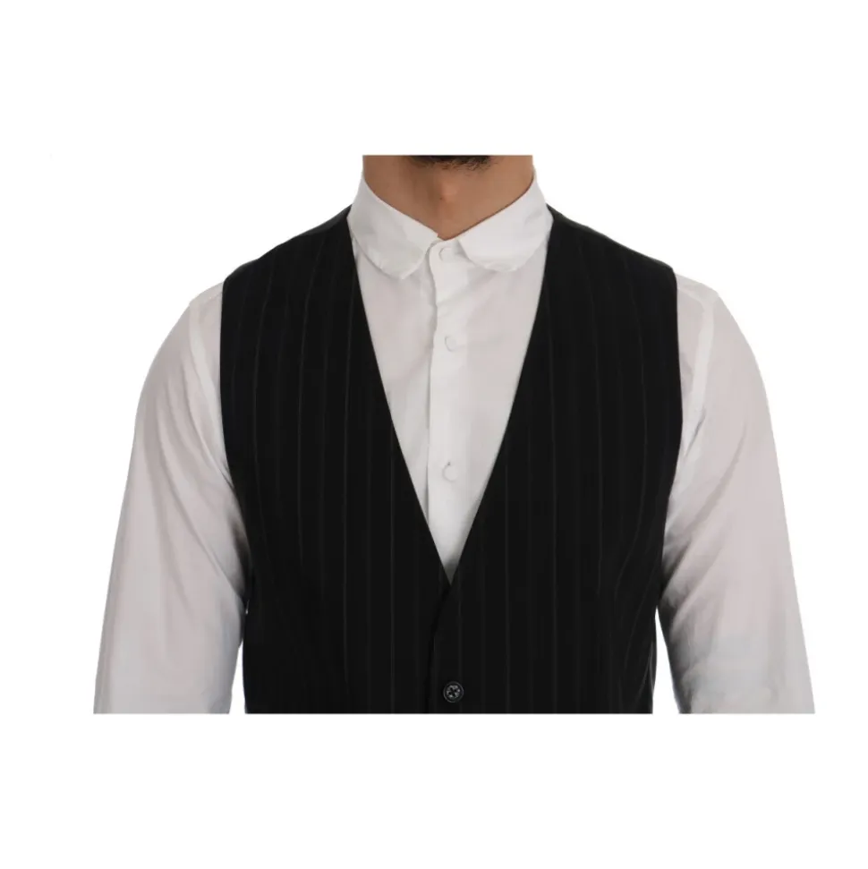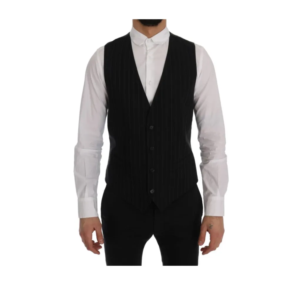 Forhøj din stil med denne Dolce & Gabbana vest til mænd. Med sit elegante enkeltknap design, klassiske sorte striber og fuld knaplukning er denne vest et symbol på sofistikeret stil. Fremstillet af 80% bomuld og 20% viskose, tilbyder den en behagelig pasform med en justerbar rygstrop. Håndlavet i Italien med enestående opmærksomhed på detaljer, er denne vest et tidløst tilføjelse til din garderobe.