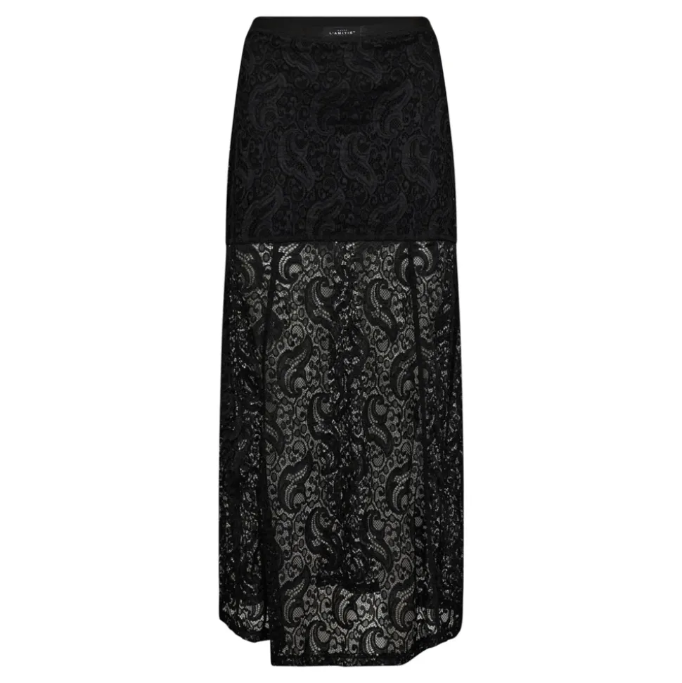 Haute L’Amitié Summer Lace Skirt kombinerer delikat blonde med en bred, elastisk linning for en luftig, feminin maxinederdel. Den semi-transparente kant tilføjer subtil tekstur og bevægelse. Nøgleattributter: Sort | Polyamid | Elastisk linning | Blonde stof | Semi-transparent kant | Maxi længde | Dimensioner & pasform: Almindelig pasform | Sammensætning & pleje: 90% polyamid, 10% elasthan
