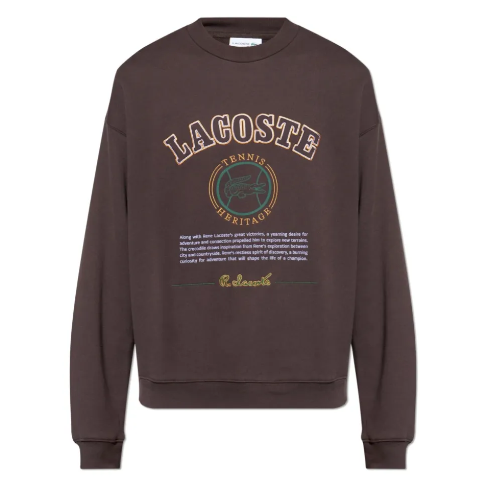 SWEATSHIRTEN MED ET BRODERET LOGO udstråler tidløs elegance og raffineret, sporty karakter, der er typisk for LACOSTE-mærkets arv. Den diskrete brune farve fremhæver dens ubesværede sofistikation, hvilket gør den perfekt til stilen af eksklusivt hverdagsbeklædning. DEN KLASSISKE CREWNECK-SKÆRING med subtilt sænkede skuldre og høj kvalitet, blød bomuldsstof sikrer ikke kun enestående komfort, men også vedvarende æstetik. Sweatshirten er blevet perfektioneret i hver eneste detalje – elastiske ribkantede manchetter på ærmerne og kanten garanterer en fremragende pasform og varig form. Dens unikhed understreges af DET DISTINKTIVE BRODEREDE “LACOSTE” BOGSTAVTRYK i collegestil, centralt placeret mod en kontrasttrim. Det iøjnefaldende runde “TENNIS HERITAGE” motiv med den ikoniske grønne krokodille, sammen med perfekt udførte broderidetaljer, fremhæver dette models unikke arv. HVORFOR SKAL DU KØBE DETTE PRODUKT? * Prestigen fra et ikonisk fransk mærke * Blødt, premiumkvalitetsbomuld * Tidløs, alsidig silhuet * Intrikate broderidetaljer og logo * Enestående komfort for den kræsne Modelens målinger Højde: 185 cm Bryst: 92 cm Talje: 74 cm Hofter: 91 cm Modellen har størrelse: 5