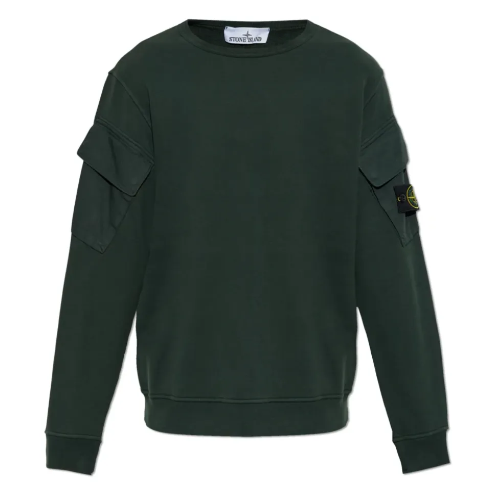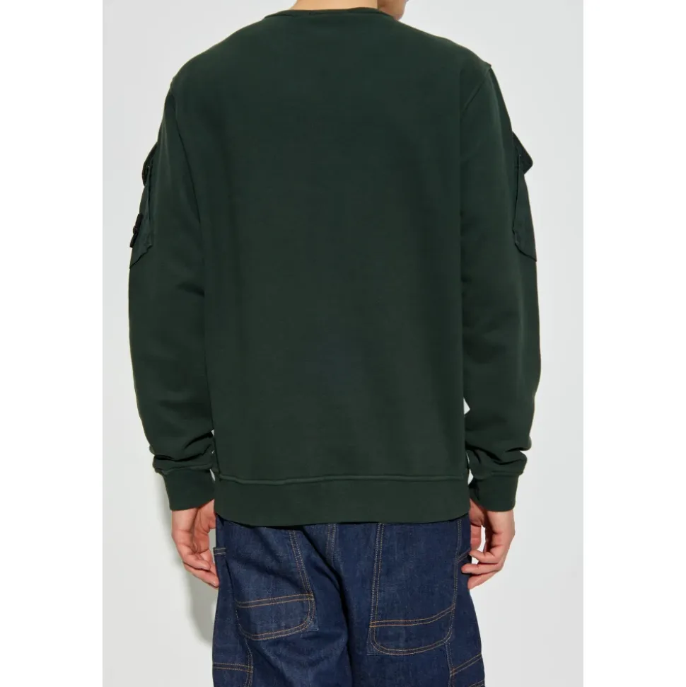 LOGO SWEATSHIRT fra Stone Island repræsenterer tidløs elegance med et sporty twist, omhyggeligt håndværk ned til mindste detalje. Dets enkle, klassiske snit med en rund halsudskæring kombinerer perfekt subtil lethed med sofistikering. Brede ribstrikkede manchetter er omhyggeligt skræddersyet i taljen og håndledene, hvilket fremhæver silhuetten og sikrer enestående komfort. Den dybe, ædle grønne farve af det premium bomuldsstof imponerer med sin blødhed og tætte, matte vævning. Opmærksomheden rettes mod det udsøgt håndværkede mærke – det ikoniske Stone Island-symbol – syet på en stor lomme på venstre ærme med to knapper. Rummelige lommer på begge ærmer tilføjer praktisk anvendelighed og gør sweatshirten virkelig unik. HVORFOR SKAL DU KØBE DETTE PRODUKT? * Omhyggeligt udvalgte, eksklusive materialer garanterer holdbarhed og komfort. * Unikke designerdetaljer med Stone Island-logoet. * Tidløst, alsidigt snit – perfekt til enhver lejlighed. * Originalitet fremhævet af funktionelle ærmelommer. * Et enestående valg for dem, der værdsætter sofistikering og komfort. Modellens målinger Højde: 193 cm Bryst: 95 cm Talje: 82 cm Hofte: 93 cm Modellen har størrelse: L