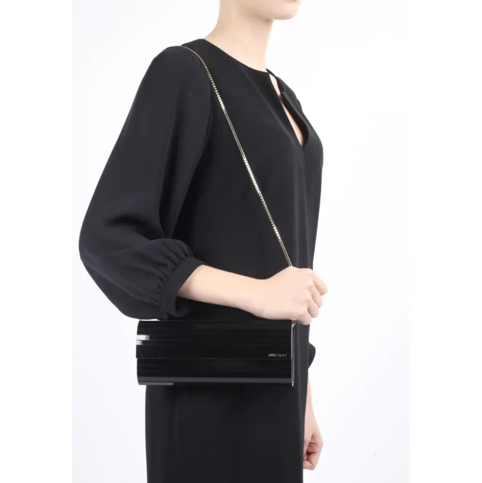 Jimmy Choo Sweetie Clutch er et elegant, sort akryl tilbehør, der er perfekt til aftenarrangementer, med et moderne design og en lang skulderkæde i metal. Produkt detaljer: Sort | Akryl | Tryklåslukning | Lang skulderkæde i metal | Lille logo på forsiden | Indvendig stiklomme | Dimensioner og pasform: Højde: 10 cm | Bredde: 24 cm | Sammensætning og pleje: 100% Akryl