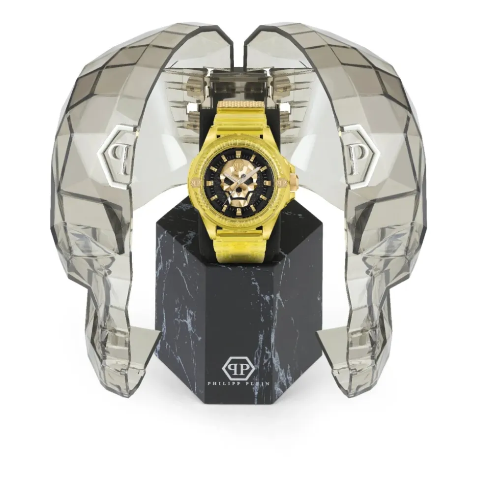 Løft din stil med $kull Syntetisk ur fra Philipp Plein, med et markant gult urkasse og rem med en kontrasterende sort urskive. Produkt detaljer: Gul | Sort | Silikone | Vandtæt op til 5 ATM | Fedt design | Philipp Plein skull gaveæske | Sammensætning og pleje: Silikone | Aftørres med en blød klud.