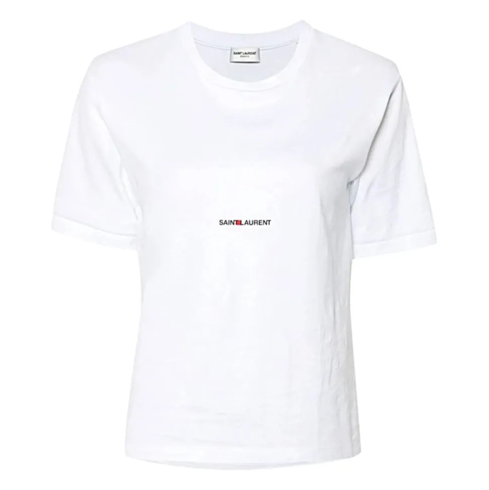 Saint Laurent T-shirten er en minimalistisk garderobefavorit med en ren crew-halsudskæring og logo-detalje, designet til hverdagsbrug og nem lagdeling. Nøgleattributter: Hvid | Bianco | Åndbart stof | Crew-halsudskæring | Korte ærmer | Logo-detalje