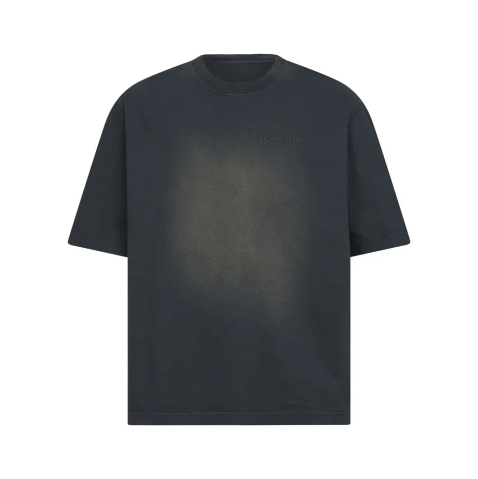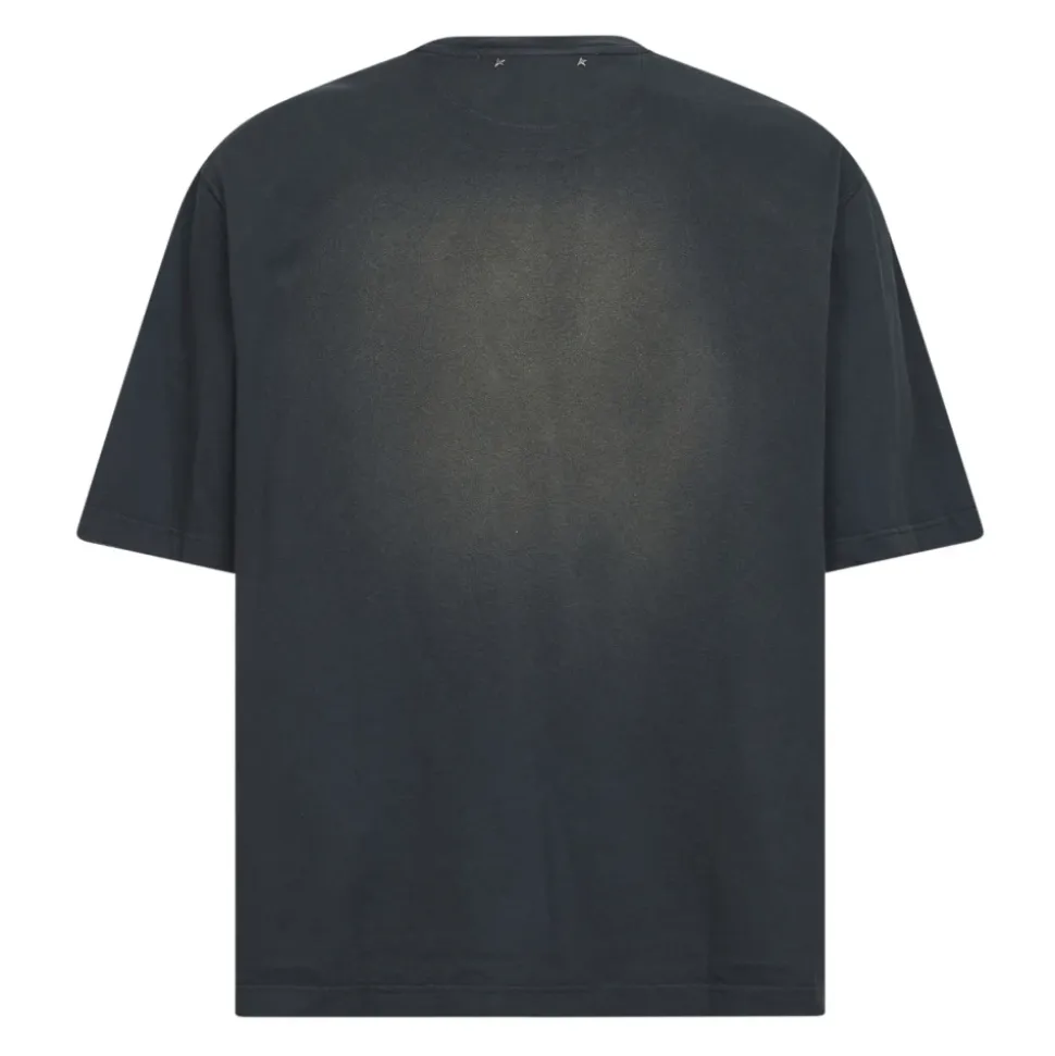 Golden Goose T-shirt i sort bomuldsjersey med broderet logo, med en gennemgående bleget behandling og en dobbelt metalstjerne bagpå for et slidt, afslappet look. Nøgleattributter: Sort | Bleget vasket sort | Bomuld | Bløde skuldre | Ribstrikket crewneck | Korte ærmer | Sort Golden Goose logo broderet på brystet | Dobbelt metalstjerne bagpå | Lige søm | Gennemgående bleget behandling | Detaljer med distressed-effekt ved kanterne | Dimensioner og pasform: Afslappet pasform | Sammensætning og pleje: 100% bomuld