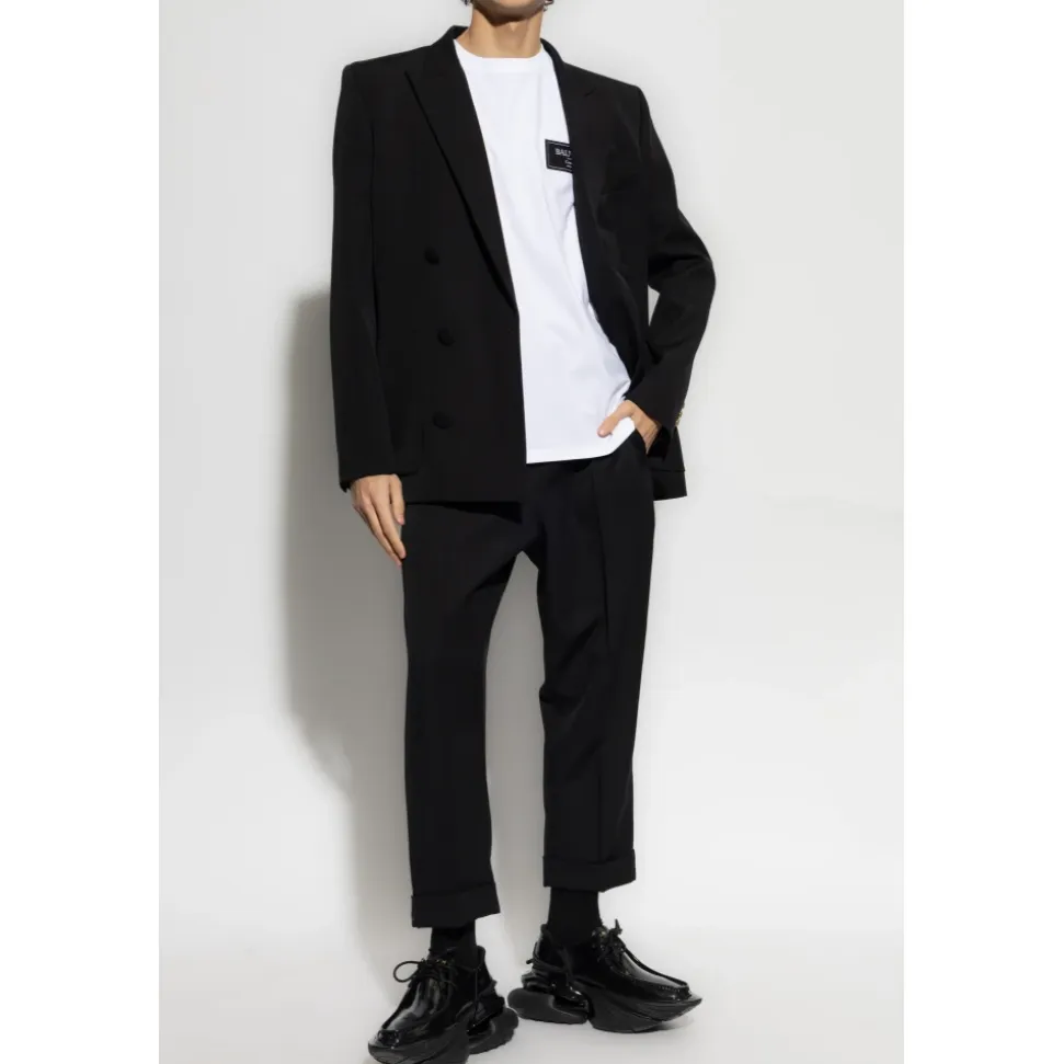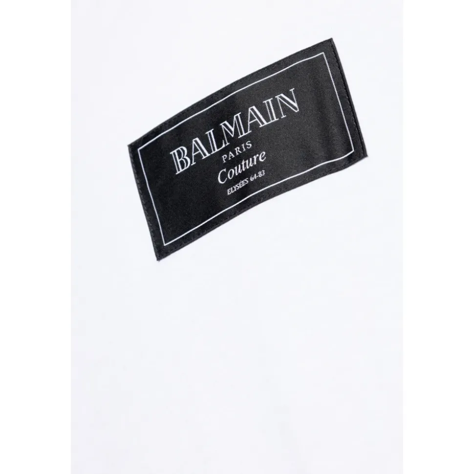 Den elegante T-SHIRT MED LOGO PATCH fra BALMAIN PARIS COUTURE-mærket er essensen af chic og klasse. Denne hvide T-shirt fra den eksklusive kollektion har et KLASSISK SNIT med korte ærmer og en rund halsudskæring, der subtilt fremhæver halsudskæringen. Lavet af den højeste kvalitet BOMULD, garanterer den ikke kun komfortabelt slid, men også enestående holdbarhed. På forsiden, på venstre side af brystet, er der en SORT PATCH med logoet, der tilføjer en antydning af avantgarde karakter til det hele. Denne T-shirt komplementerer perfekt både solo og når den kombineres med en elegant sort blazer og bukser, hvilket skaber et harmonisk og stilfuldt ensemble. HVORFOR SKAL DU KØBE DETTE PRODUKT? * Eksklusiv materialekvalitet – 100% bomuld. * Universal pasform egnet til mange outfits. * Balmain-mærkets prestige, der symboliserer luksus og modehåndværk. * Unik logo-patch, der understreger originalitet. Modellens mål Højde: 185 cm Bryst: 92 cm Talje: 74 cm Hofter: 91 cm Modellen har størrelse: L