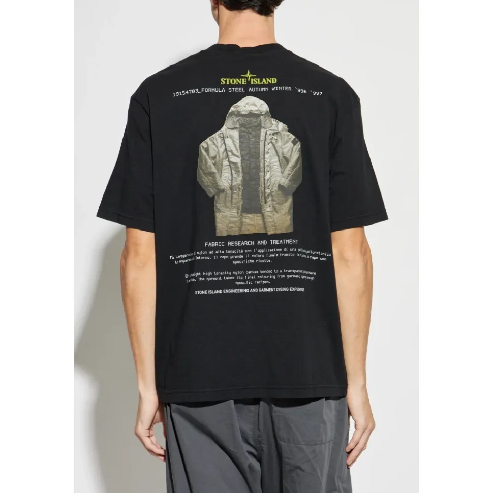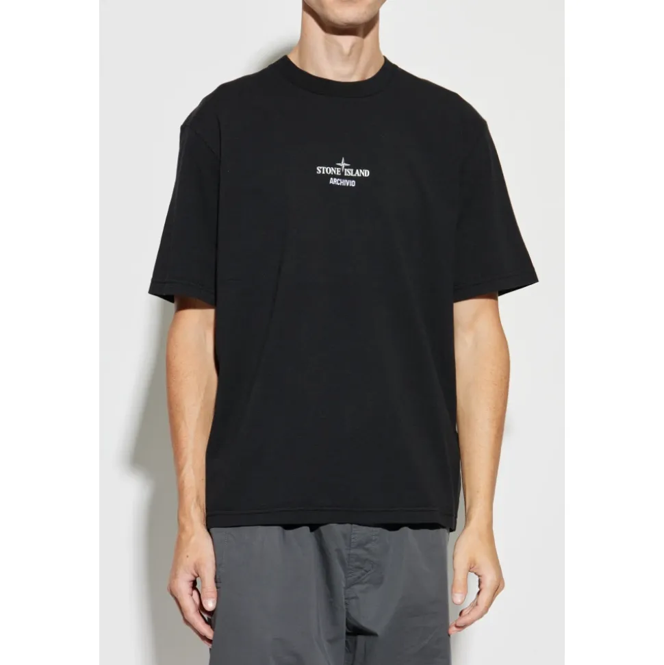 PRINTED T-SHIRT af STONE ISLAND er et tidløst valg for mænd, der værdsætter raffineret enkelhed og det italienske designs håndværk. Den har en regelmæssig, let løs pasform, korte ærmer og en rund halsudskæring, der fremhæver stykkets klassiske æstetik. Omhyggeligt udvalgt, premiumkvalitetsbomuld med en kompakt struktur og subtil mat finish sikrer komfort og holdbarhed. Forsiden er kendetegnet ved en omhyggelig broderi med