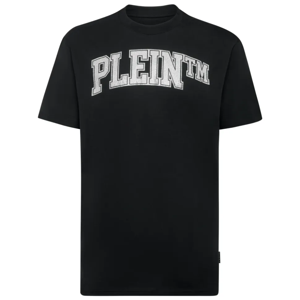 Philipp Plein T-shirt Round Neck SS with Crystals opdaterer en bomuldsjersey-rundhals med et rhinestone-glitrende Brand-print og et saffianlæder PP Hexagon-mærke for et markant casual look. Nøgleattributter: Sort | Hvid | Bomuld | Komfortabel, åndbar bomuldsjersey | Rund (crew) halsudskæring | Korte ærmer | Rhinestone-besat Brand-print | Saffianlæder PP Hexagon-mærke på bærestykket | Dobbeltsyede kanter | Sammensætning & pleje: 100% bomuld | Trimning: 100% glasfiber | Saffianlæder (mærke)