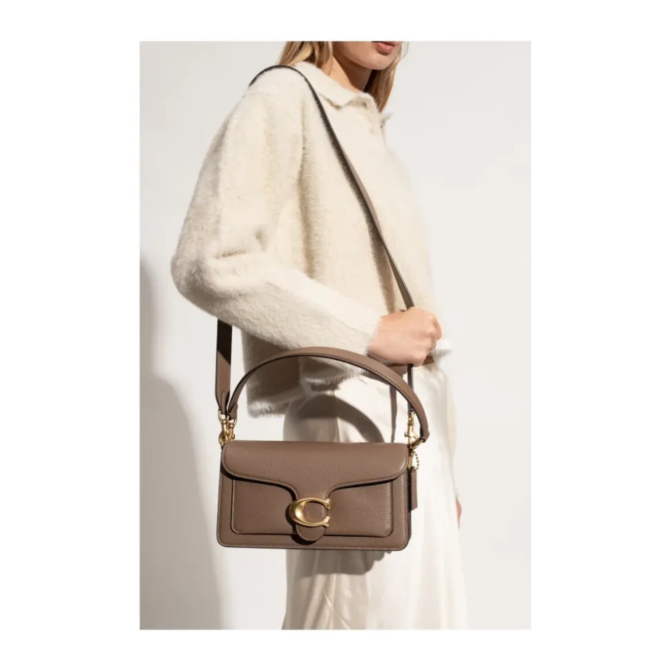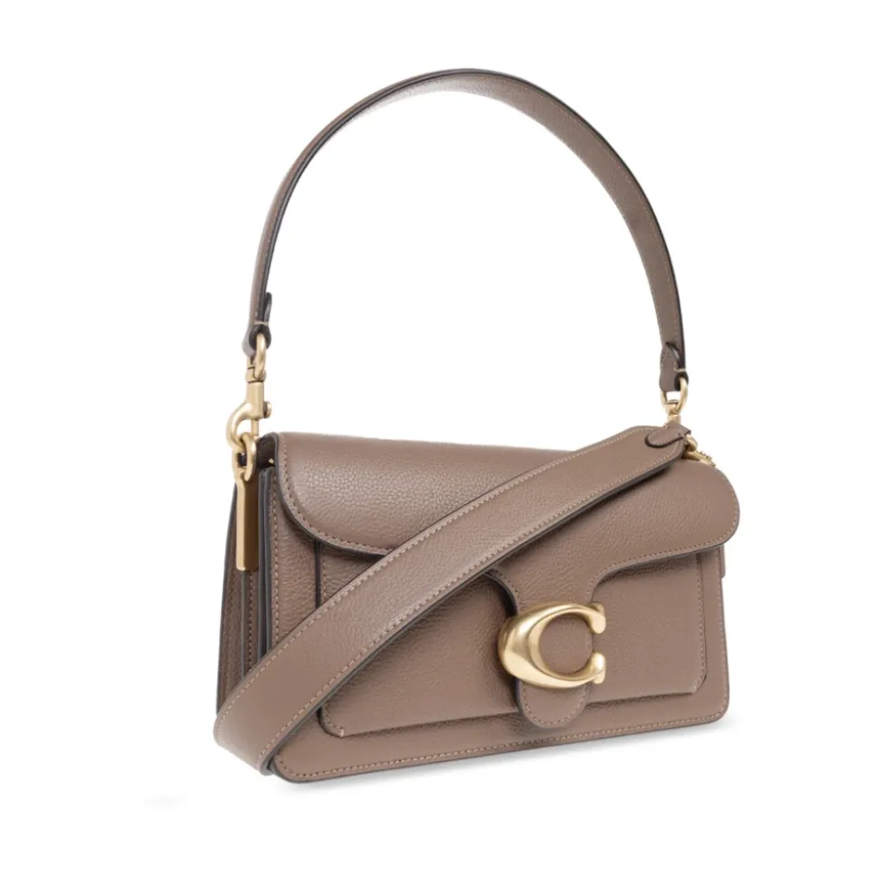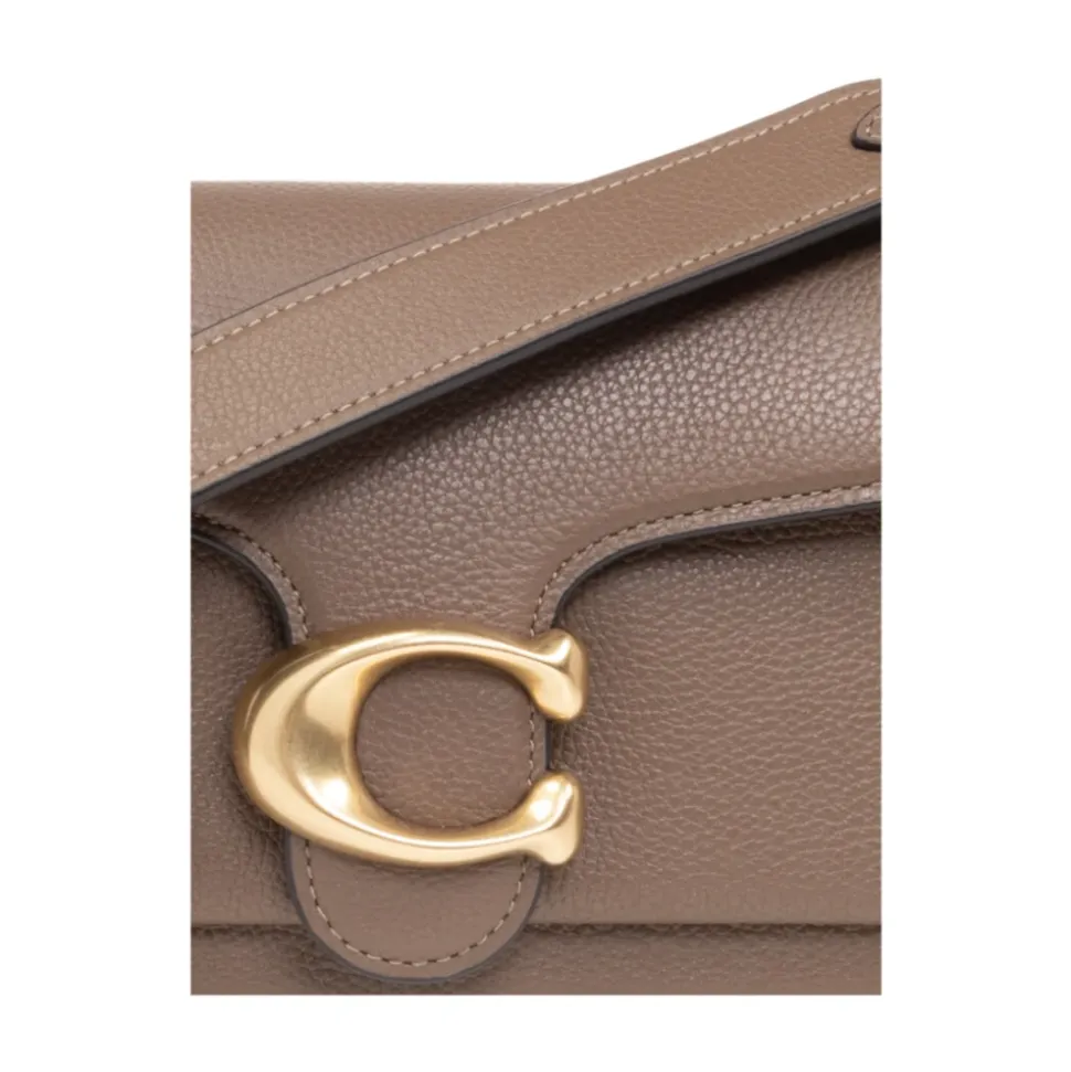 Coach Tabby 26 Skuldertaske kombinerer poleret pebble-læder med alsidige bæremuligheder. Den er designet til hverdagsbrug med to aftagelige remme til at bære i hånden, over skulderen eller som crossbody. Vigtige egenskaber: Brun | Messing | Mørk sten | Poleret pebble-læder | Klap med magnetlukning | To aftagelige remme: tophåndtag og skulder-/crossbody-rem | Slip-lomme bagpå | Indvendig lynlåslomme og multifunktionelle indvendige lommer | Klap-silhuet med guldfarvet metal C-monogram | Poleret pebble-læderfinish | Mål & pasform: Længde: 26 cm | Højde: 15 cm | Bredde: 8 cm | Kort rem drop: 18 cm | Lang rem drop: 53 cm | Sammensætning & pleje: Læder | Stofforing