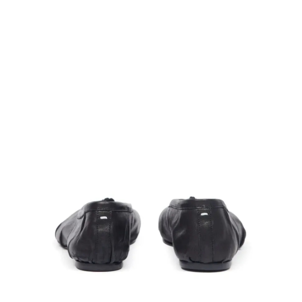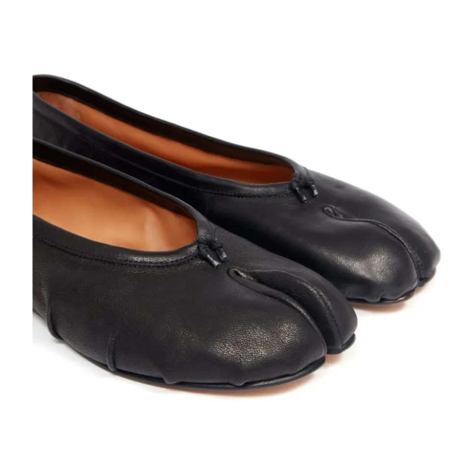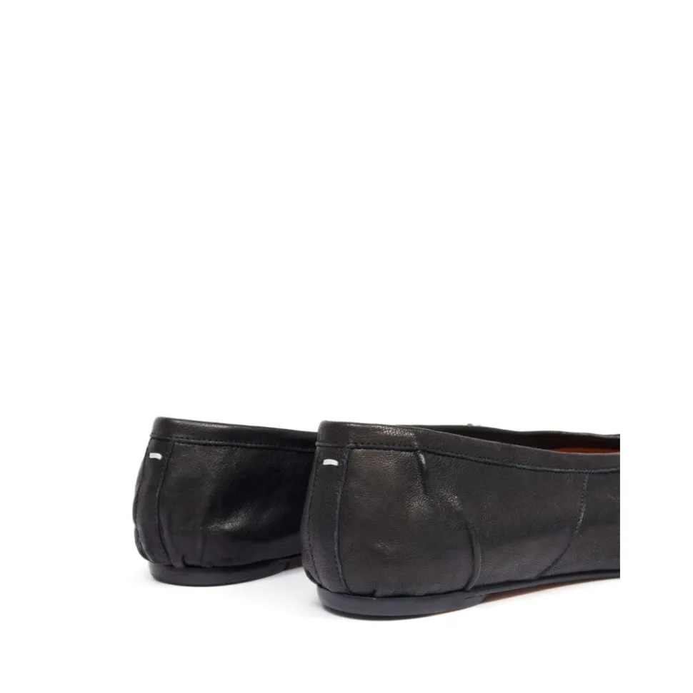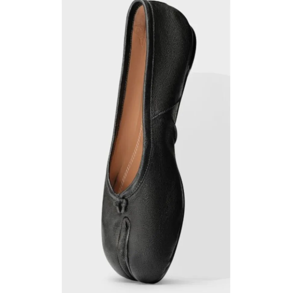 Maison Margiela Tabi New Ballerina (Varekode S58WZ0127P6378T8013) fortolker arkivalske ballerina sko med husets signatur split-tå. Designet fremhæver den karakteristiske Tabi split og hvide stikningsdetalje for en øjeblikkeligt genkendelig finish. Vigtige egenskaber: Sort | Bovineskind læder | Kalveskindsfor | Kalveskindssål | Lille hæl | Tabi split-tå | Hvid stikningsdetalje bagpå | Bomuldsknude på tå | Håndlavede læderfolder | Slidt/vintage behandling | Sammensætning & pleje: Bovineskind | Kalveskindsfor | Kalveskindssål | På grund af nappalæderets fine karakter, brug vegetabilske læderplejeprodukter til vedligeholdelse.