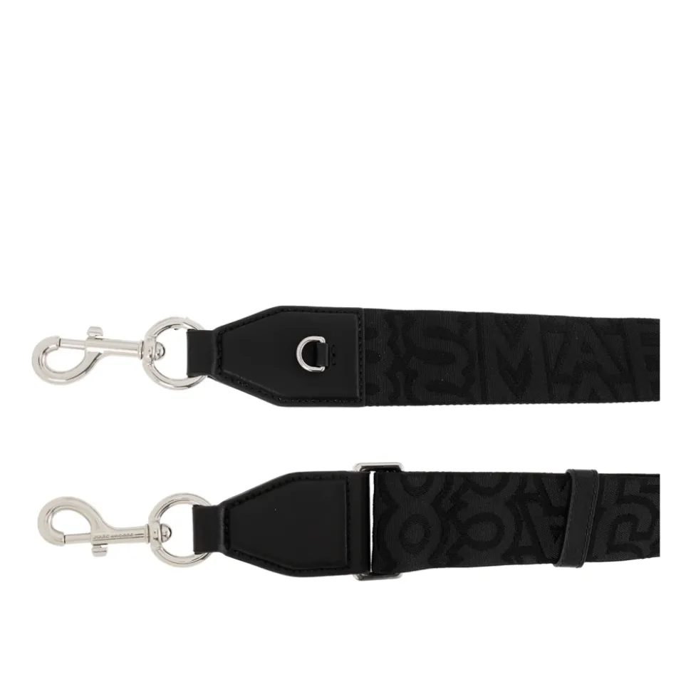 Sort justerbar taskestropper fra Marc Jacobs. Lavet af stof med et jacquard monogrammønster, dette element lukkes med sølvtonet hummerkloer. Længde: 144 cm Bredde: 5 cm