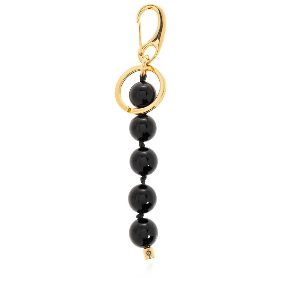 Oplev Wandler Taskevedhæng, et sofistikeret tilbehør, der tilføjer elegance til enhver taske med sit unikke design af Elza Wandler. Produkt detaljer: Sort | Materialer af høj kvalitet | Sorte, skinnende perler | Gyldent dekorativt element | Karabinhage og ring med indgraveret tekst |