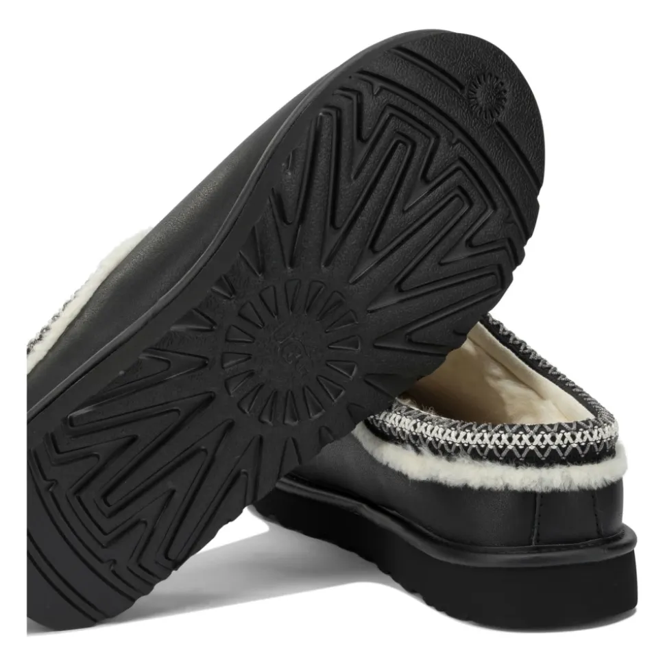 UGG Tasman Slipper kombinerer en læderoverdel med blødt UGGplush-for, der giver en polstret og let slip-on, ideel til hverdagsbrug derhjemme eller ude. Vigtige egenskaber: Sort | Læder | Polstret indersål | Varmt UGGplush™-for | Letvægts EVA-ydersål | Slip-on design | Skumfodseng for stødabsorbering | Polyester indersålsstøtte | Lav profil silhuet | UGGbraid-kant med dobbelte synlige syninger | Tekstureret krave | Varmpræget UGG-logo | Dimensioner og pasform: Lav profil slip-on silhuet | Komfortabel, tætsiddende pasform, der er velegnet til indendørs og udendørs brug | Sammensætning og pleje: Læder (overdel) | Uld (UGGplush-for og indersål) | TENCEL™ lyocell (UGGplush-for og indersål) | Polyester (binding/welt/indersålsstøtte) | Skum (fodseng) | EVA (ydersål; Treadlite by UGG eller sukkerrørs-EVA)
