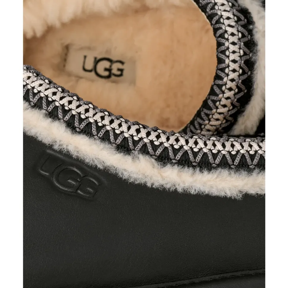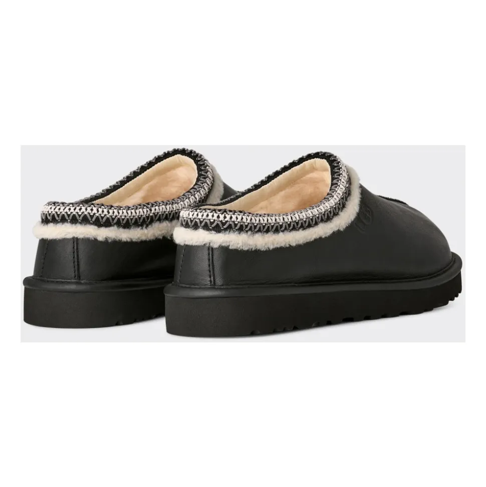 UGG Tasman Slipper kombinerer en overdel i ruskind med en synlig krave af fåreskind for varm og nem slip-on brug. Ideel til hurtig komfort indendørs eller til afslappet udendørs brug. Vigtige egenskaber: Sort | Nero | Ruskind | Fåreskindsforet | Stødabsorberende EVA-ydersål | Slip-on konstruktion | Nem at tage af og på | Flettet sort-hvid tekstiltrim | Synlig pelsforet krave | Logo på siden | Dimensioner og pasform: Lav slip-on pasform | Sammensætning og pleje: Ruskind | Fåreskind | Sugarcane EVA | Tekstil