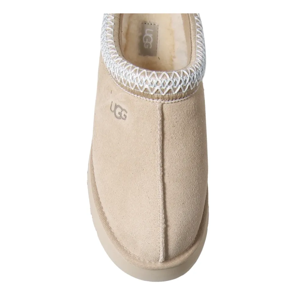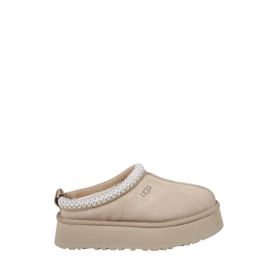 UGG Tazz II Mule kombinerer en ruskindsoverdel med blødt fåreskindsfor og en letvægts sukkerrørs-EVA-platform for behagelig og let slip-on-brug. Ideel til afslappet, hverdags komfort derhjemme eller på farten. Vigtige egenskaber: Beige | Sandfarvet | Ruskind | Blødt fåreskindsfor og indersål | Letvægts sukkerrørs-EVA-ydersål | Forbedret rockerform for jævn gang | Slip-on mule-konstruktion | Trækfane bagpå | Platformsål | UGGbraid-trim | Tekstilbinding | Åben mule-silhuet | Dimensioner og pasform: Platformhøjde: 4,45 cm | Normal i størrelsen | Sammensætning og pleje: Ruskindsoverdel | Fåreskindsfor (10 mm) | Fåreskindsindersål (10 mm) | EVA-mellemsål | Sukkerrørs-EVA-ydersål | Tekstilbinding | UGGbraid-trim