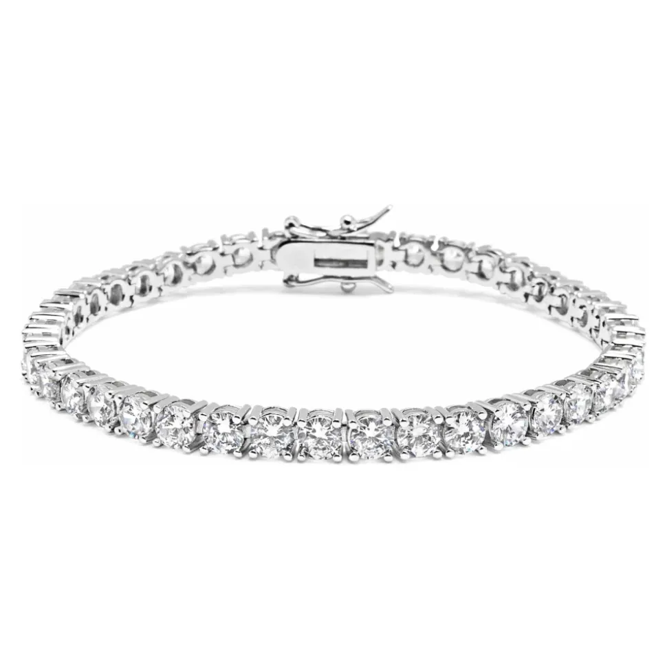 Bracelet in Stainless Steel Clear Cubic Zirconia Stones Handmade in Los Angeles Product Code: WSP_014 Designer’s Notes This tennis bracelet blends timeless sparkle with modern durability — crafted in stainless steel and set with precision-cut CZ stones for that just-right shine. Made to layer, made to last. Please note that all our pieces are crafted by hand and one-of-a-kind, and may therefore vary slightly in size, shape, and color.