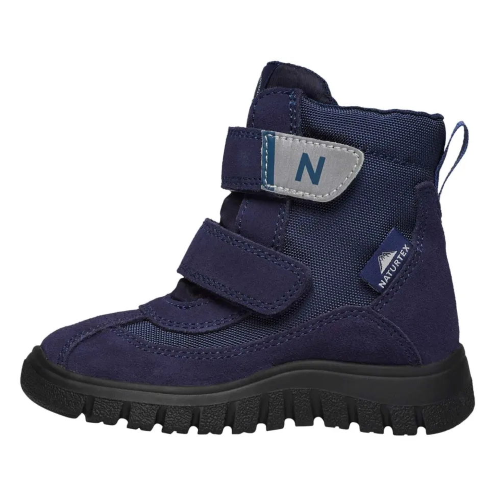 Naturino THORENS 3 VL WP. er en vandtæt ankelstøvle i ruskind og teknisk stof, der er bygget til udendørs gåture og koldere vejr. Den kombinerer et uldforet interiør med en gribesikker gummisål for varig komfort og sikkert fodfæste. Vigtige egenskaber: Blå | Navy | Ruskind og teknisk stof | Vandtæt | Skridsikker gummisål | Testet til alt slags vejr | Dobbelt remlukning | Uldfor og indersål | Gummiydersål | Ankelstøvle | Lukning med to remme | Overdel i ruskind og teknisk stof | Sammensætning & pleje: Ruskind (læder) | Teknisk stof | Uld | Gummi