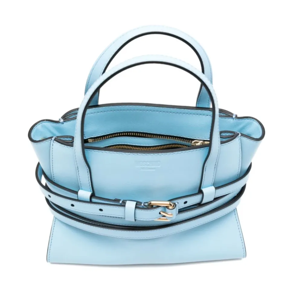 Moschino Tie Me Lille Læderhåndtaske er en kompakt, alsidig taske, der defineres af sit aftagelige dekorative bælte og lette konstruktion – designet til nem brug fra dag til aften. Vigtige egenskaber: Blå | Klar blå | Læder | Let konstruktion | Justerbar og aftagelig skulderrem | Flere bæremuligheder: hånd, skulder, crossbody | Magnetlukning | Foret indre med lille indvendig lomme | Dekorativt aftageligt bælte, der omkranser tasken | Logo på klappen | Rundt/dobbelt håndtag | Mål & pasform: Dybde: 11 cm | Bredde: 20 cm | Højde: 18 cm | Lille størrelse | Sammensætning & pleje: Læder | Foring: 100% Bomuld | Rengør med naturlige læderprodukter; undgå slibende rengøringsmidler og overdreven vand.