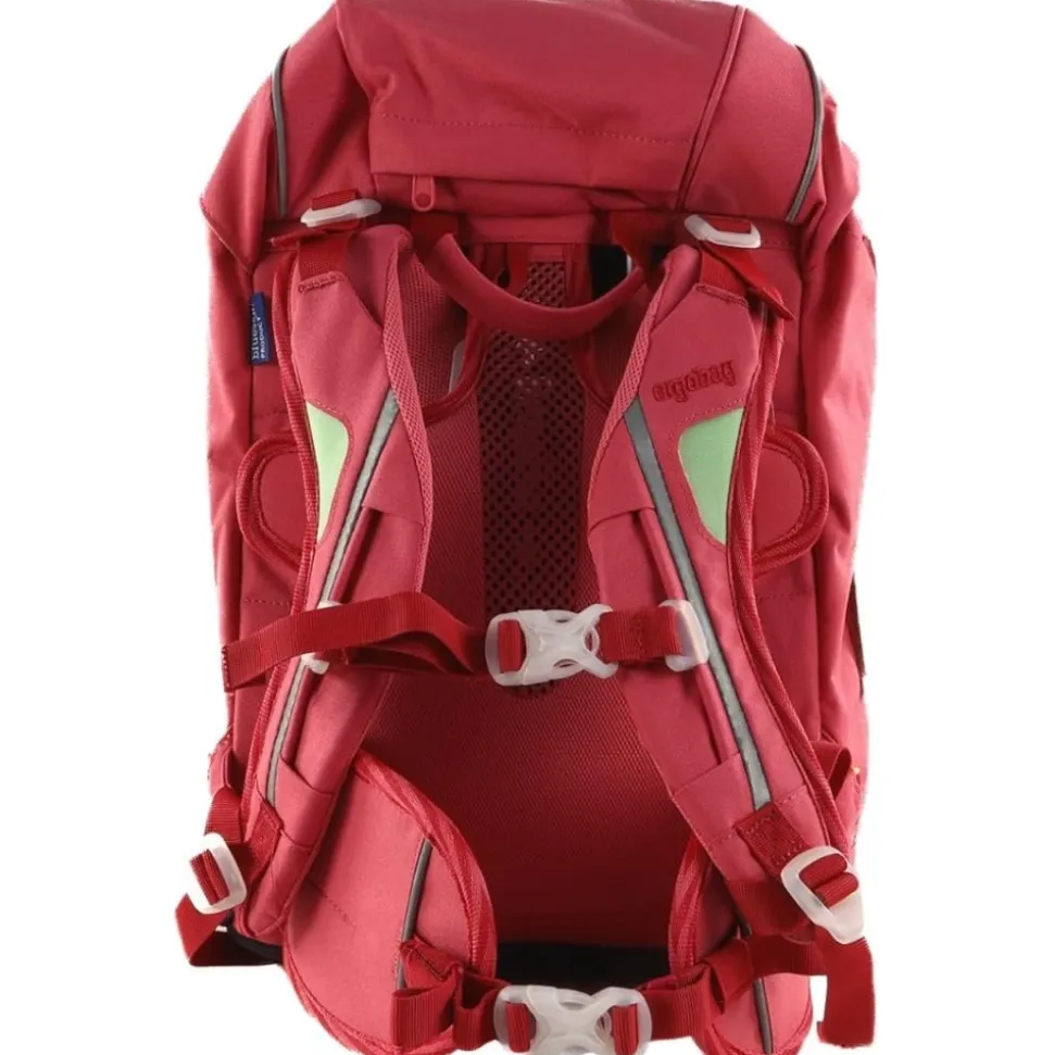 Sæt skoletaske + penalhus + tilpasningsdygtig Dimensioner: 28 x 40 x 25 cm (L/B/H) Gram: 1100 g Liter: 20 Funktioner: Justerbart ‘Your-Size-System’ støttesystem God pasform takket være brede polstrede hofter God synlighed takket være reflekser på alle sider Ring til montering af Hangies Ekstremt let at åbne og lukke takket være magnetisk lukning Kan tilpasses med Kletties og Hangies Særdeles synlig takket være reflekterende tryk Materiale: Lavet af 17 genanvendte PET-flasker Vand- og smudsafvisende