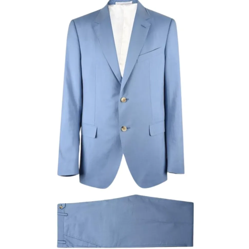 Løft dit formelle outfit med Lanvin Todelt Himmelblåt Kostume. Dette enkeltknaps sæt kombinerer en skræddersyet jakke med matchende bukser, perfekt til enhver sofistikeret lejlighed. Produkt detaljer: Himmelblå | Uldblanding | Enkeltknaps jakke | Skræddersyet pasform | Matchende bukser | Dimensioner og pasform: Regular fit | Sammensætning og pleje: 80% Uld | 20% Polyester | Renseri kun