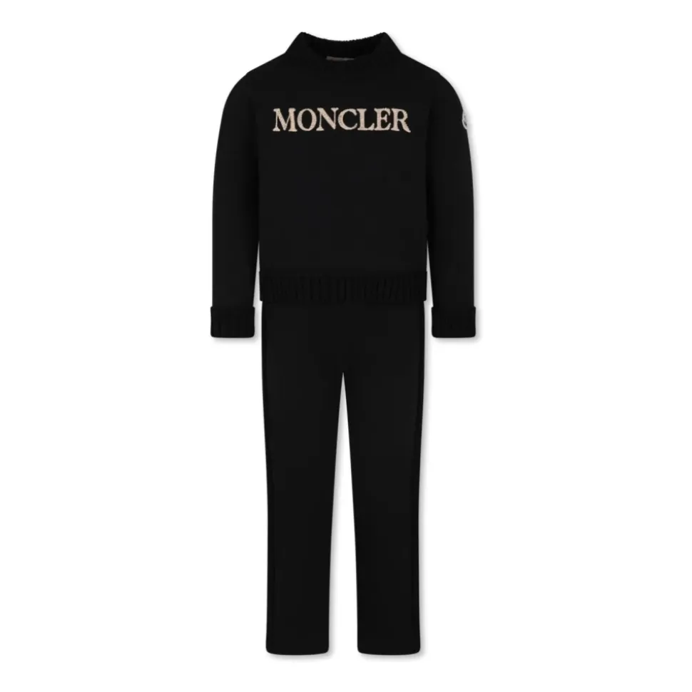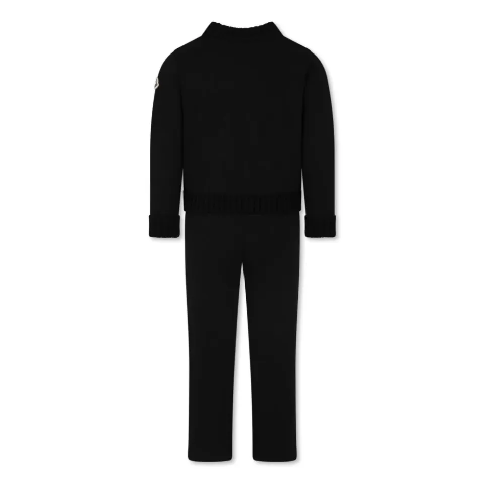 Moncler todelt sæt kombinerer en sweatshirt med rund hals med matchende bukser, med ribstrikkede kanter og et broderet logo foran for et rent hverdagslook. Nøgleattributter: Sort | Bomuld | Elastisk talje | Rund hals | Lange ærmer | Broderet logo på forsiden | Ribstrikkede kanter | Strikkede striber i siden | Lige kant | Sammensætning og pleje: 100% bomuld