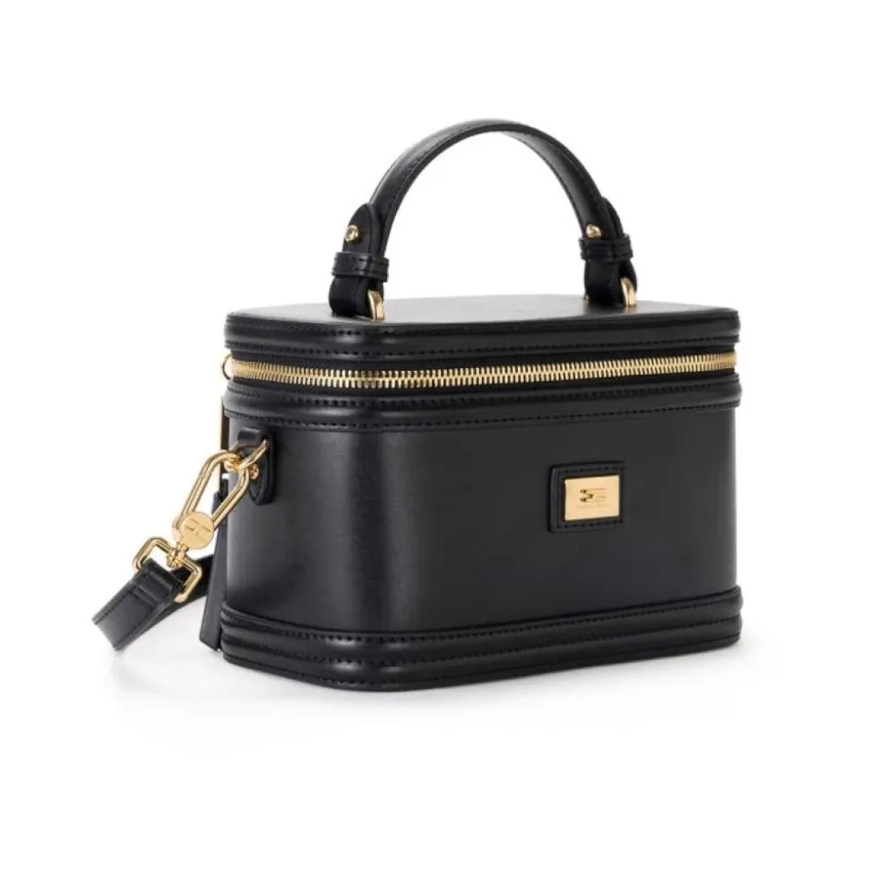 Elisabetta Franchi toilettaske til rejsebrug er et kompakt rejsetilbehør, der er afsluttet med guldfarvet hardware. Designet til at rumme dine toiletartikler, den glider let ned i bagagen eller en større taske. Vigtige egenskaber: Sort | Polyurethan | Holder toiletartikler | Guldfarvet hardware | Rejsevenligt design | Mål og pasform: 19 cm x 13 cm x 10 cm | One size | Sammensætning og pleje: 100% polyurethan