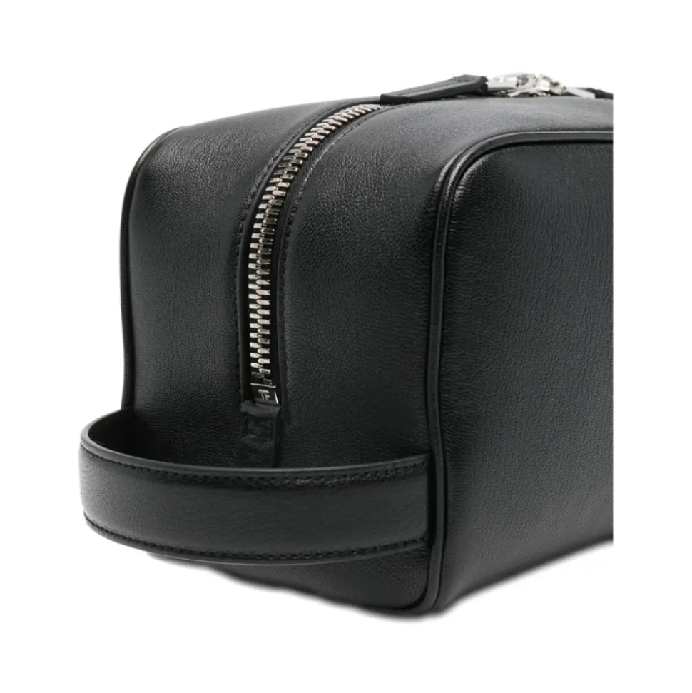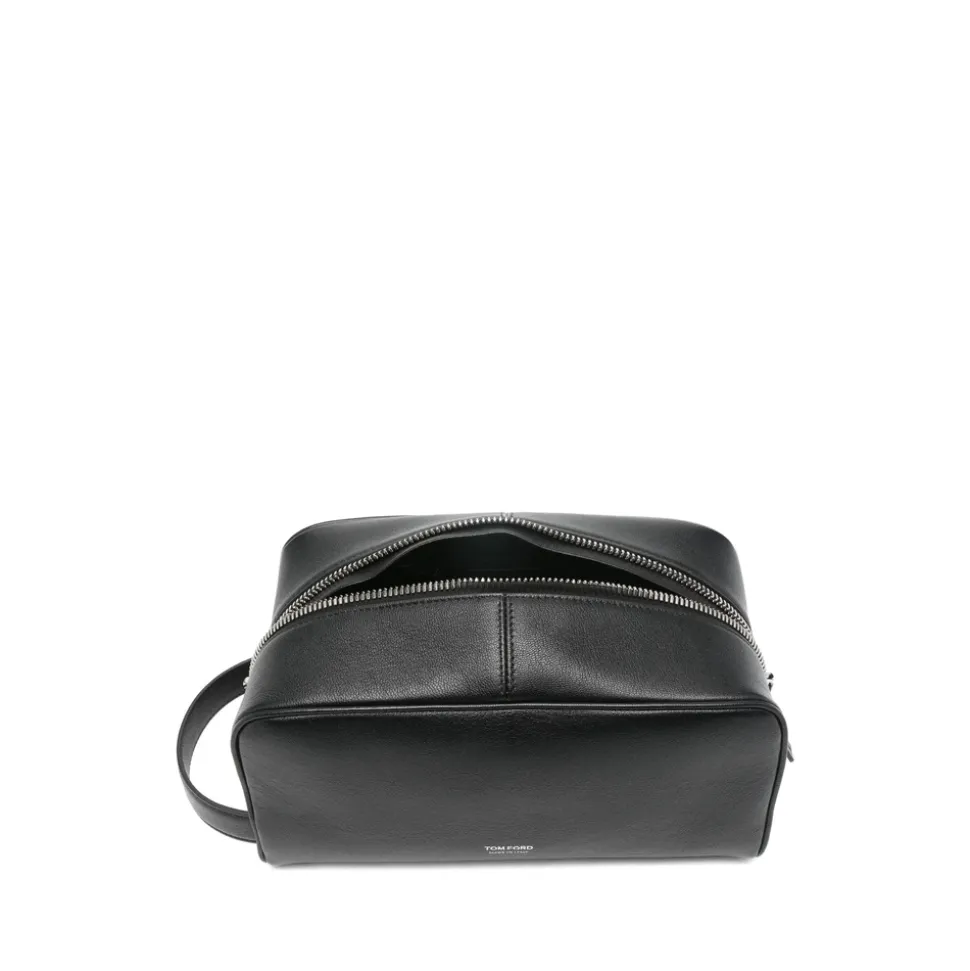 Tom Ford Toilletry Bag er et raffineret rejsetilbehør fra Tom Ford, designet til sikker og kompakt opbevaring. Den fremhæver en ren silhuet med signaturlogo detaljer og en lynlåslukning for nem adgang. Nøgleattributter: Sort | Lynlåslukning | Indvendig lomme til organisering | Logo detalje | Elegant, minimal silhuet