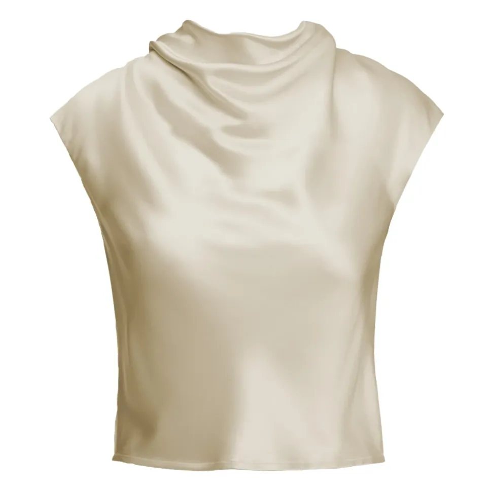 Wakakuu Icons Top New Marble er en satin top med en draperet halsudskæring og en afslappet silhuet, designet til både festlige lejligheder og hverdagsbrug. Nøgleattributter: Beige | Satin (Naia acetat, polyester) | Krølbestandig | Silkeblød fornemmelse | Skjult lynlås bagpå | Let konstruktion | Blød, silkeagtig tekstur | Draperet halsudskæring | Afslappet, lige silhuet | Skjult lynlås bagpå (designdetalje) | Dimensioner & pasform: Normal i størrelsen | Afslappet pasform | Sammensætning & pleje: Naia acetat | Polyester