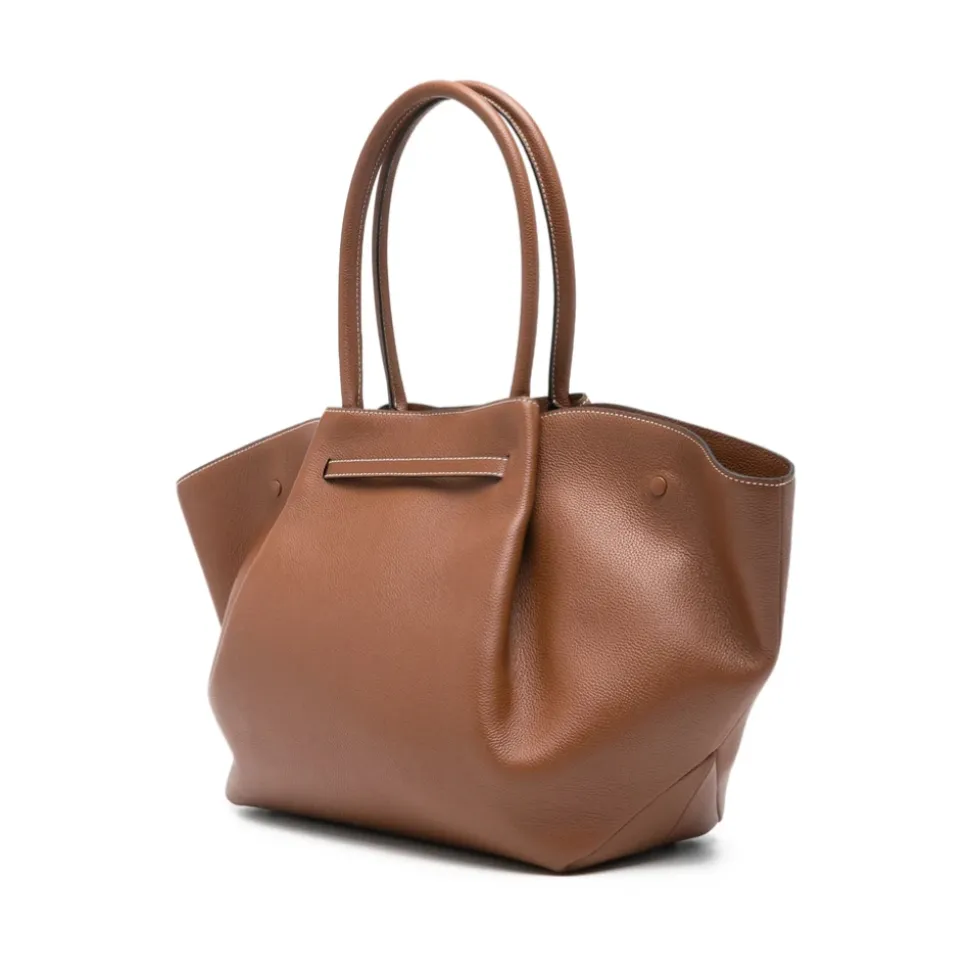 DeMellier Tote Bag er en struktureret lædertaske med en kornet tekstur og udvidelige sider, designet til organiseret daglig brug. Den kombinerer tophanke med indvendige lommer for praktisk, dagligdags brug. Vigtigste egenskaber: Brun | Læder | Tophanke | Magnetisk lukning | Spænde lukning | Trykknaplukninger | Indvendig lynlåslomme | Indvendig stiklomme | Indvendigt logostempel | Metal fødder | Kornet tekstur | Udvidelige sider | Logostempel foran | Fuldt foret | Guldfarvet hardware | Dimensioner & pasform: Dybde: 20,0 centimeter | Hank: 19,0 centimeter | Højde: 25,0 centimeter | Bredde: 35,0 centimeter | Sammensætning & pleje: Læder