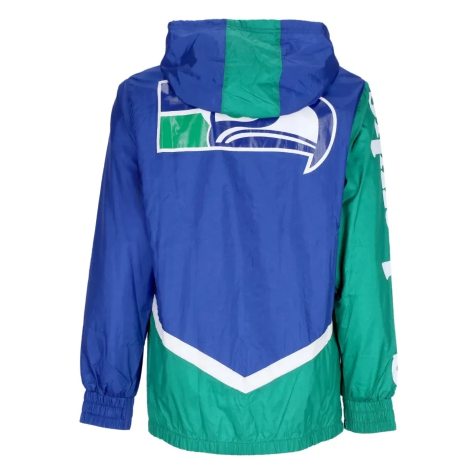 Hold dig varm og stilfuld under træningen med Mitchell Ness NFL Undeniable Full Zip Windbreaker i Sea Royal. Denne træningsjakke er designet til mænd og har et fedt violino uomo print. Køb den nu hos Atipici og opdag alle farver og stilarter af Mitchell Ness streetwear.