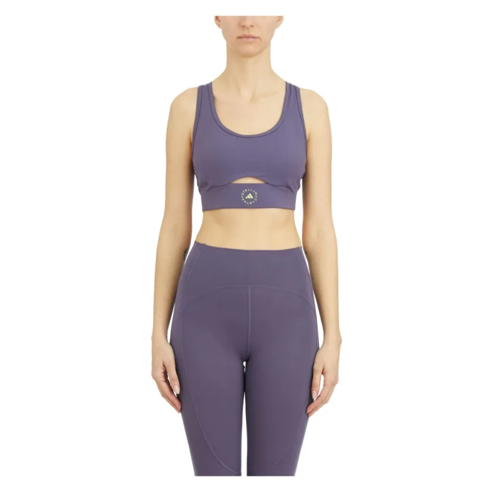 Adidas by Stella McCartney Training Cutout Sports BH kombinerer ydeevne og stil til træning med medium intensitet, med en frontudskæring og en støttende racerback for forbedret ventilation og bevægelighed. Vigtige egenskaber: Lilla | Sort | Polyester | Fugttransporterende stof | Åndbar/ventileret | Medium-støtte | Aftagelige vatterede skåle | Elastisk underkant | Frontudskæring | Racerback silhuet | Scoop-udskæring | Mål og pasform: Normal i størrelsen | Sammensætning og pleje: 79% polyester, 21% elastan | Maskinvask kold, skånsom cyklus; må ikke bleges; må ikke tørretumbles; må ikke renses.