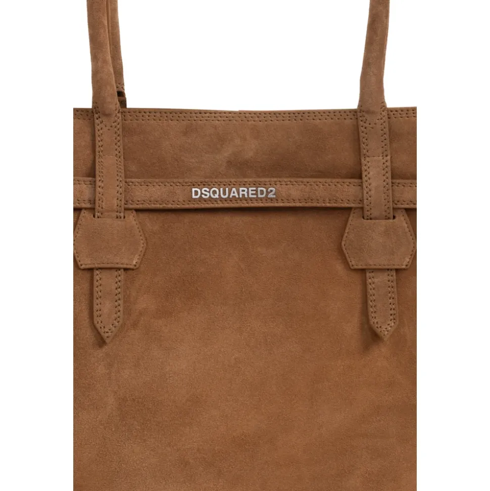 Dsquared2 Twin Shopper Taske er en raffineret ruskindstaske defineret af en blødt struktureret, trapezformet silhuet og et diskret metal DSQUARED2 logo, designet til hverdagsbrug. Vigtigste egenskaber: Brun | Ruskind | Lange rørformede hanke | Magnetlukning | Indvendig lynlåslomme | Rummeligt hovedrum | Trapezformet silhuet | Glat, umønstret overflade | Metal DSQUARED2 logo foran | Kontrasterende grafisk printfor | Topstitched finish og hank-rem detalje | Mål & pasform: Højde: 35 cm | Bredde: 38 cm | One size | Sammensætning & pleje: Ruskind