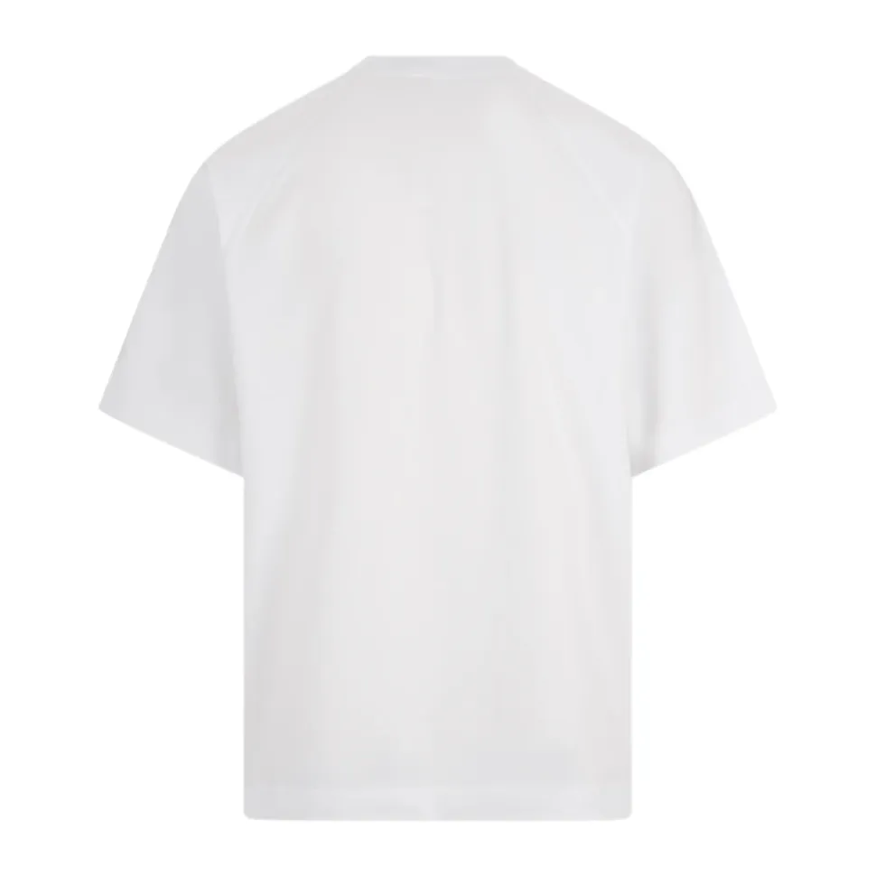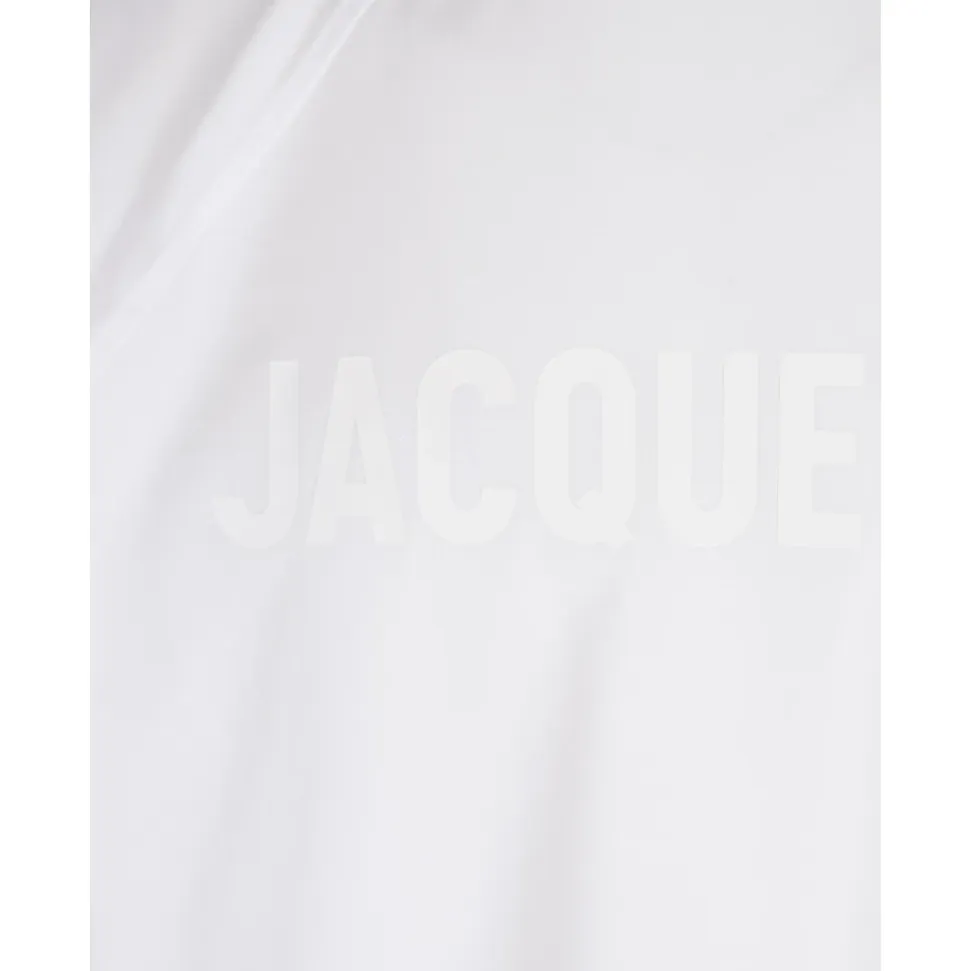 Forkæl din afslappede stil med denne hvide Jacquemus ‘The Typo’ t-shirt. Lavet af 90% bomuld og 10% elastan, den har en klassisk delvist ribbet rund halsudskæring, lige kant, albuelange raglanærmer og en tonal logo på brystet. Den afslappede pasform tilføjer et moderne touch til dette garderobestykke til mænd.